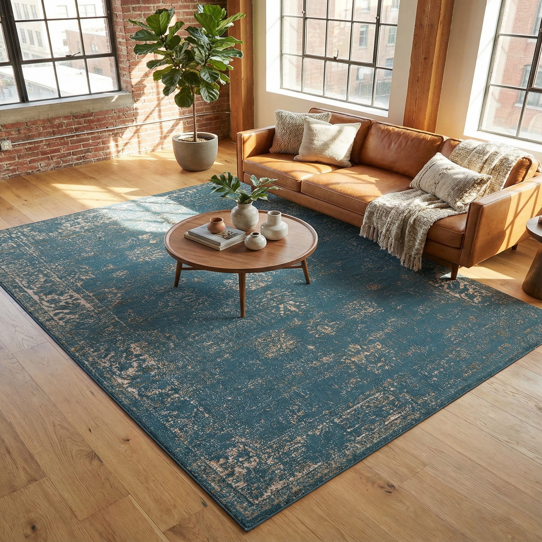 This rug pairs easily with light woods and natural textiles for a coastal or transitional scheme, and it can also bring color and texture to a modern living room when placed under a neutral sofa and coffee table. It will anchor a dining area without overpowering the space and adds warmth and character to a bedroom when layered with simple bedding and woven accents.