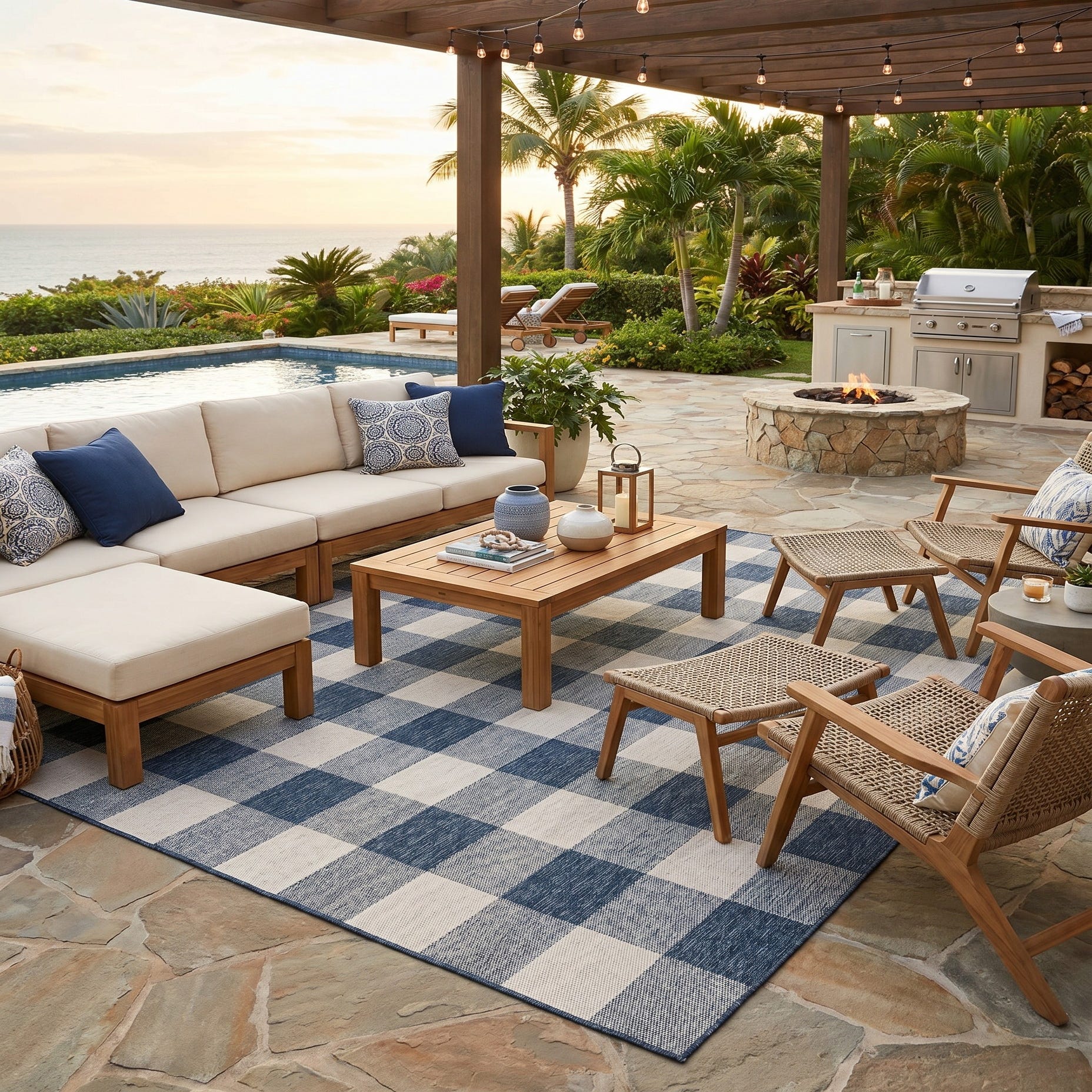 7' 10 x 10' Easy-Clean Checkered Indoor / Outdoor Rug