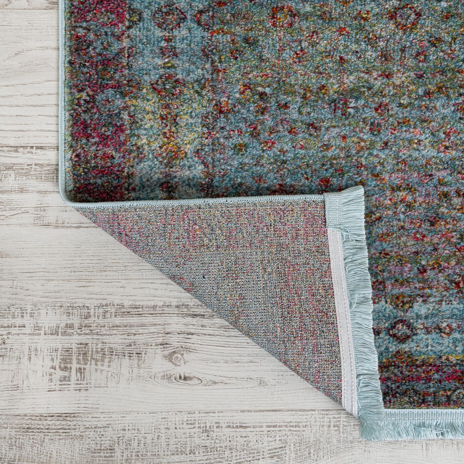 The colorful and eclectic nature of the Santiago area rug makes it particularly well-suited for spaces with a bohemian, eclectic, or transitional decor. It can also complement a minimalistic room by adding a splash of color and pattern without overwhelming the space. This rug is versatile enough to enhance a living room, dining area, or bedroom with its blend of traditional charm and contemporary hues.