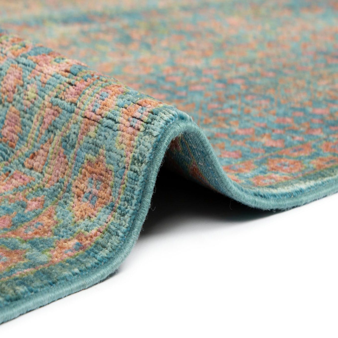 The pattern boasts intricate detailing reminiscent of classic designs, with a central medallion surrounded by ornamental motifs and a decorative border, lending an air of timeless elegance to the piece. The diversity in colors and complexity of the pattern allows for integration into a multitude of decor styles. This rug would work exceptionally well in spaces that aim to balance traditional aesthetics with vibrant colors, such as eclectic living rooms, refined dining areas, or welcoming entryways. Additionally, the Amina rug's durable wool construction and sizeable dimensions make it an ideal choice for anchoring furniture in a larger space, bringing warmth and visual interest to the room.