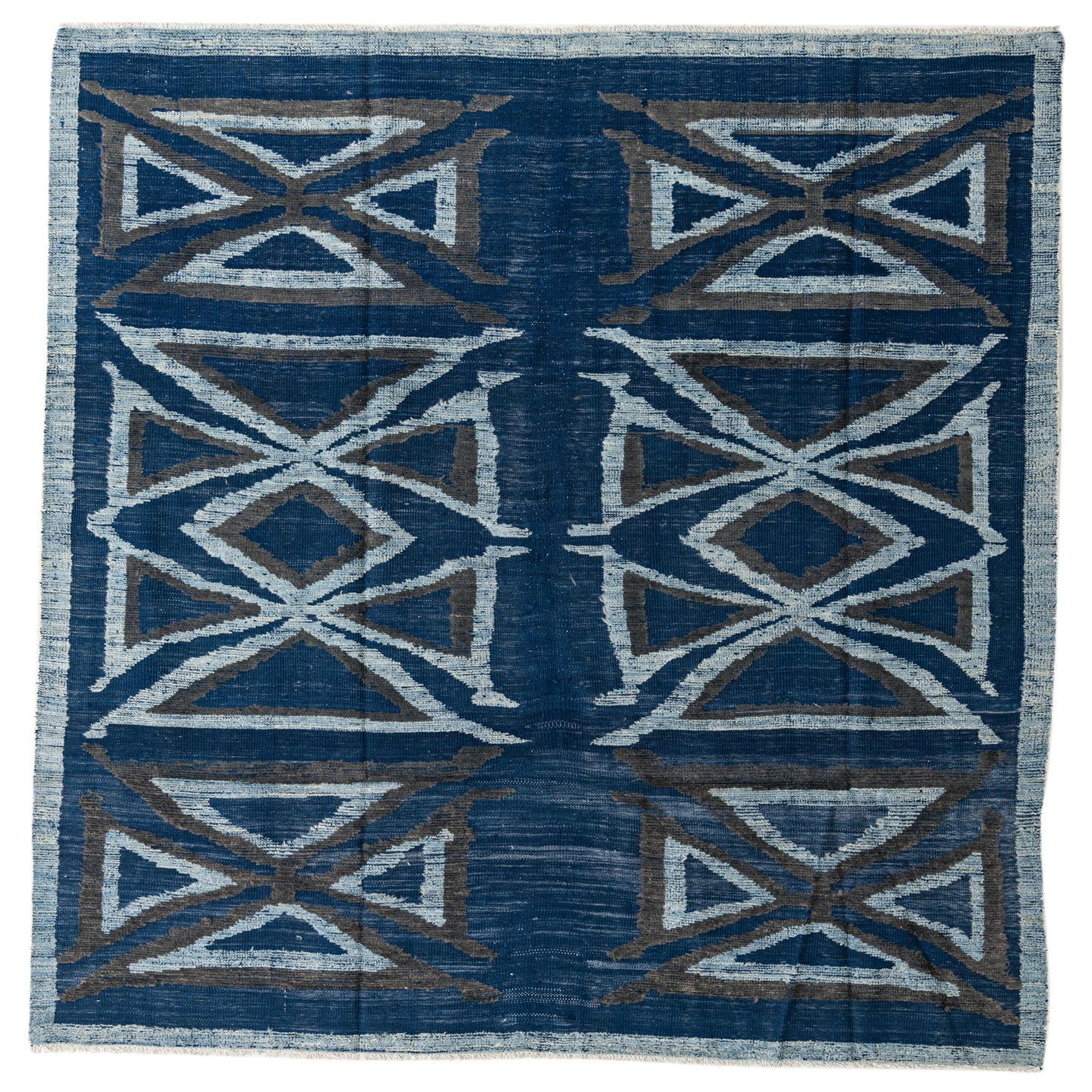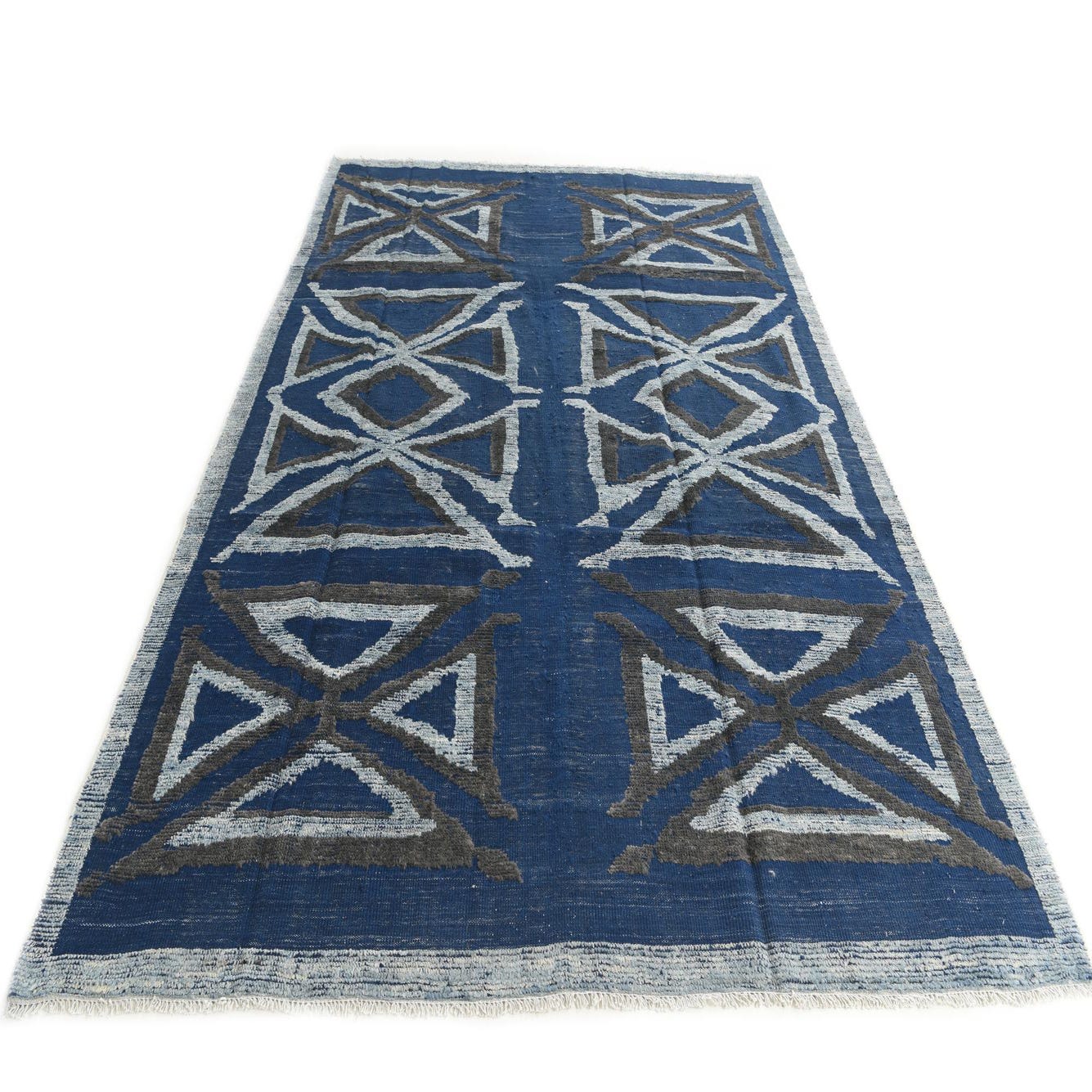 Primary color is Blue. Colors in this rug include: Blue, Light Blue, Black.