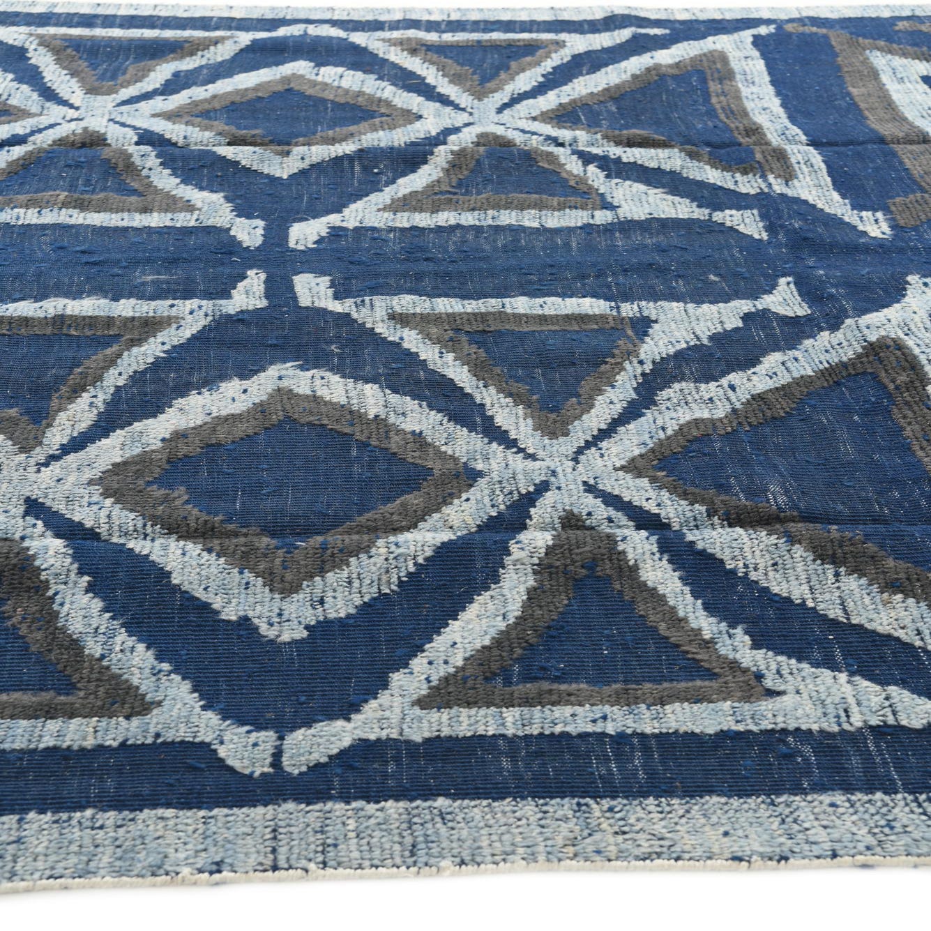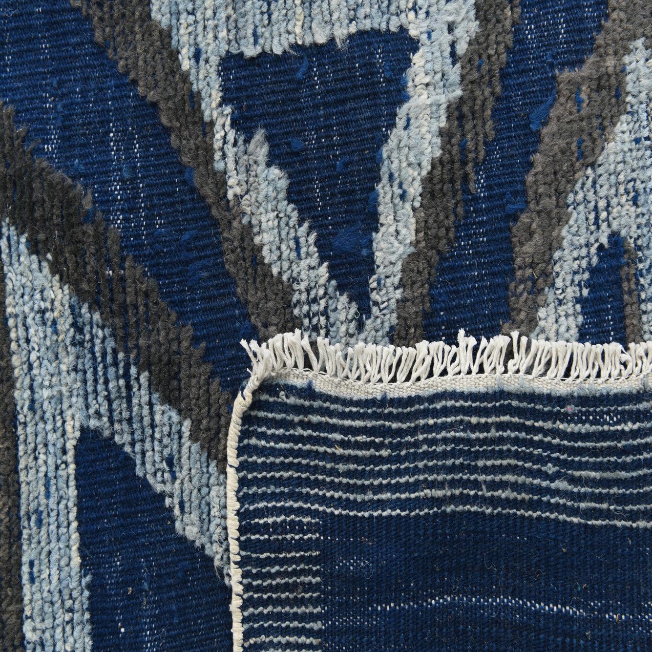 A rectangular 8x11 Darya rug in shades of blue with a modern abstract pattern featuring geometric shapes.