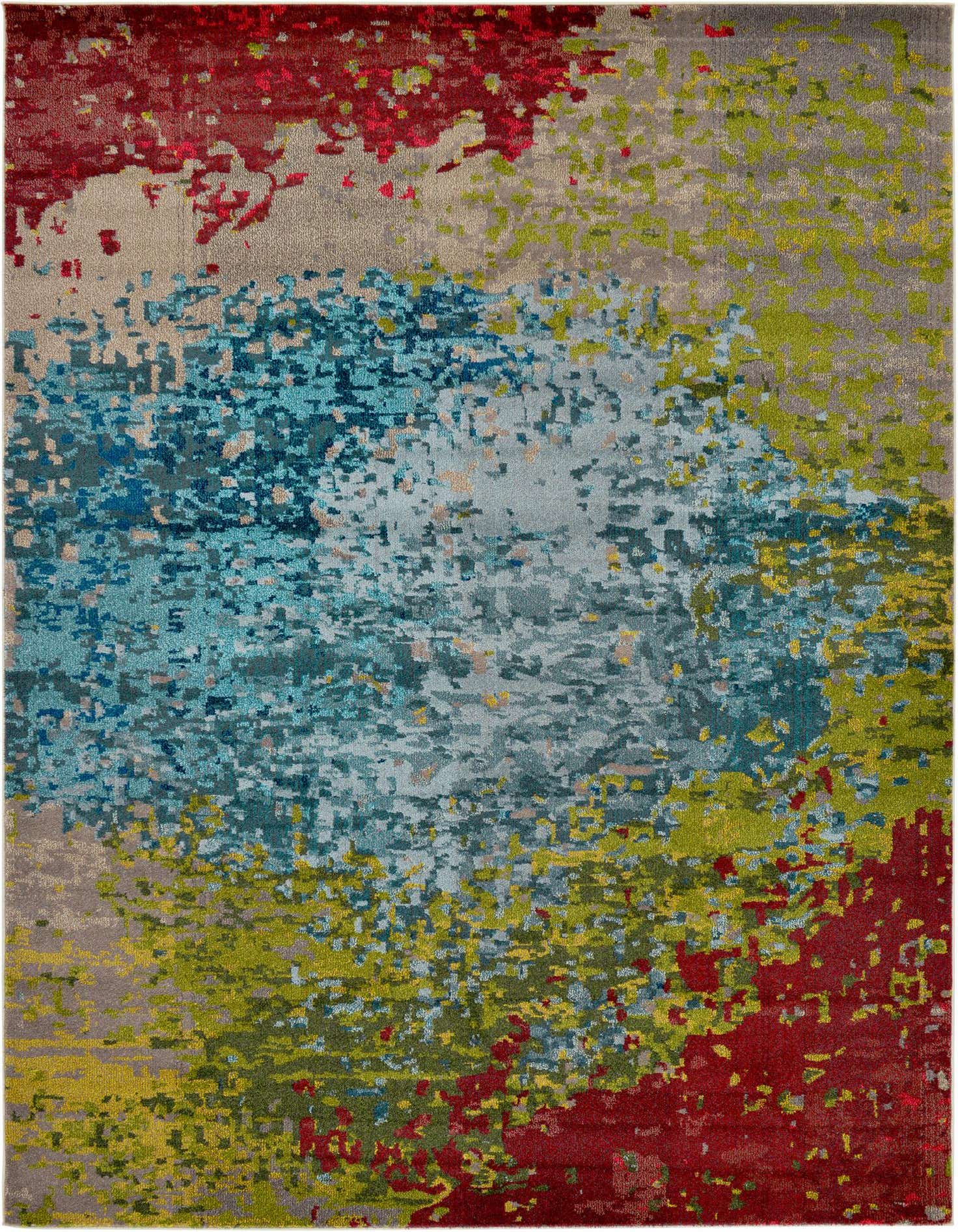 Primary color is Blue. Colors in this rug include: Blue, Beige, Gray, Green, Light Blue, Navy Blue, Puce, Red, Yellow.