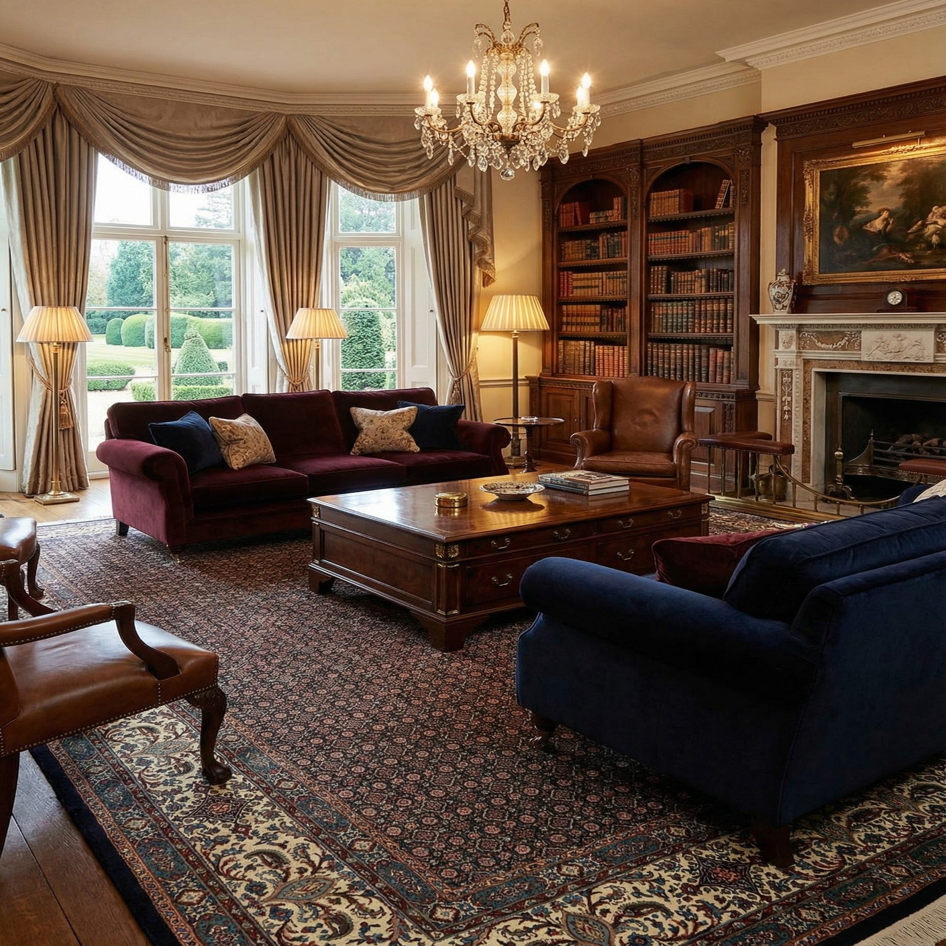This rug is well-suited for a variety of interior designs, including traditional, transitional, and even contemporary settings where it can serve as a statement piece. It would be particularly complementary in spaces that celebrate rich wood tones and leather furnishings, or it could serve as a contrast to minimalist, modern decor to introduce texture and depth. Whether placed in a living room, dining area, or office, this rug promises to enhance the space with its timeless appeal and craftsmanship.