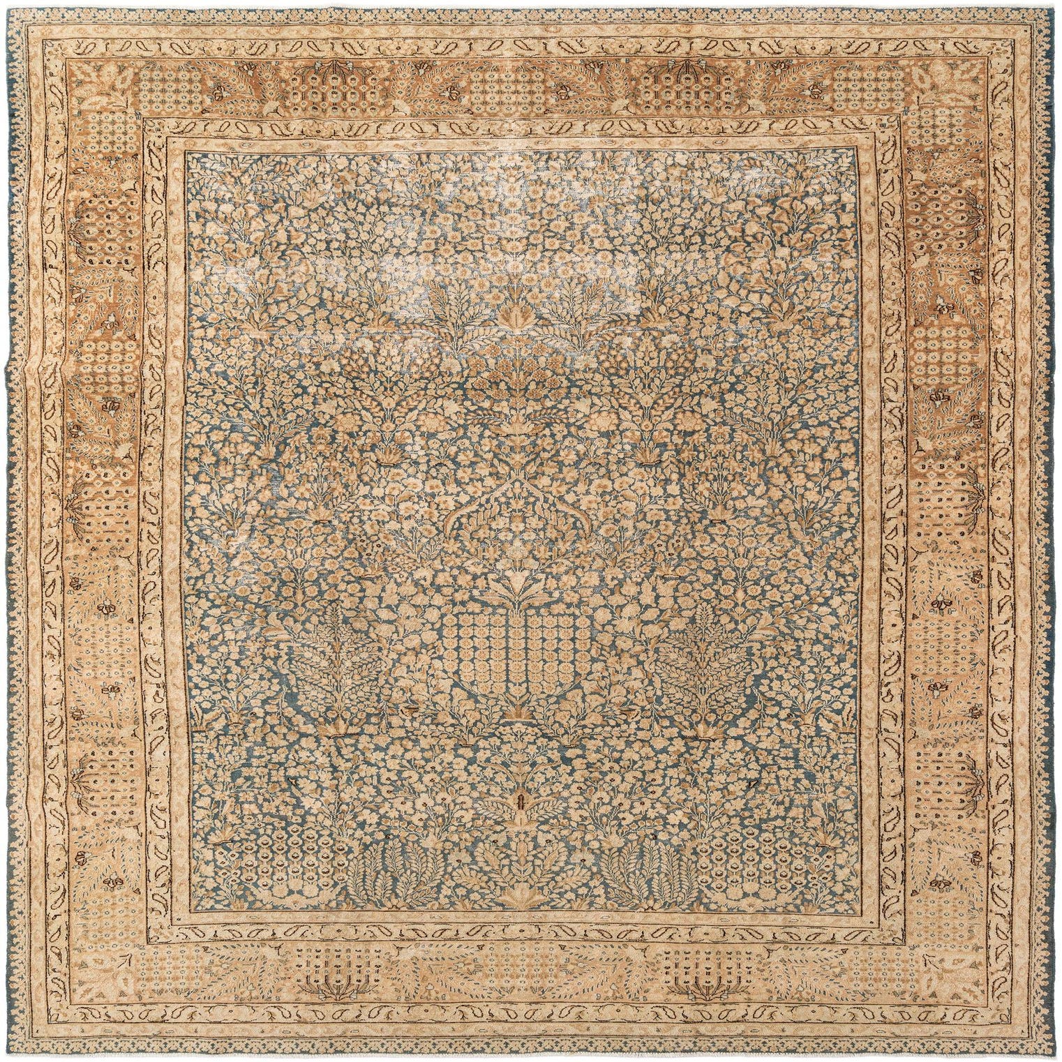 An 8x11 rectangular Vintage Royal wool rug featuring a dense floral pattern in blues and beige, with a multi-layered border.