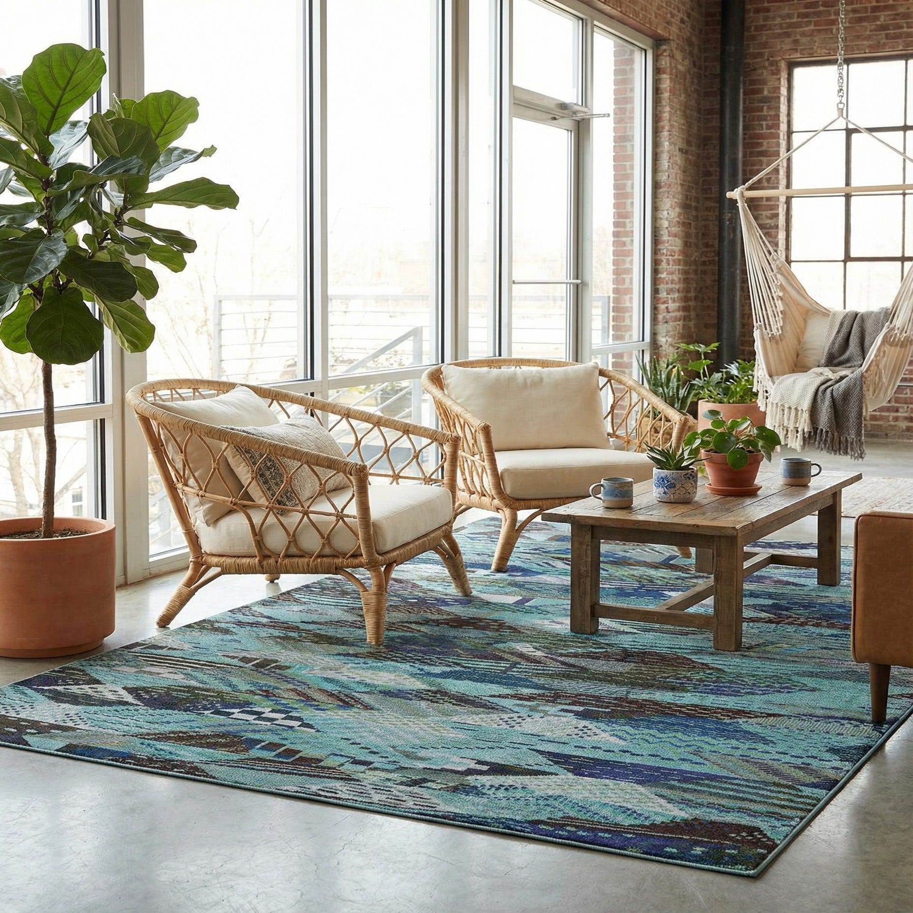 This versatile, contemporary piece pairs well with mid-century and modern furnishings, coastal palettes, or a neutral scheme that needs a dose of color and pattern. Use it to anchor a living room seating group, beneath a dining table to add visual interest, or in a home office to bring depth and pattern to the floor. It works nicely with warm wood tones, slate grays and soft greens for a balanced, layered look.