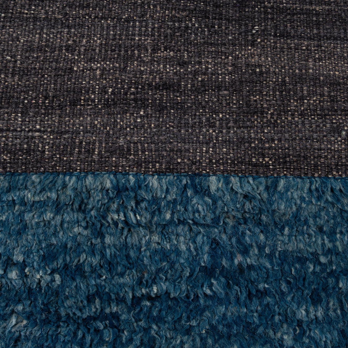 Primary color is Blue. Colors in this rug include: Blue, Black, Navy Blue.