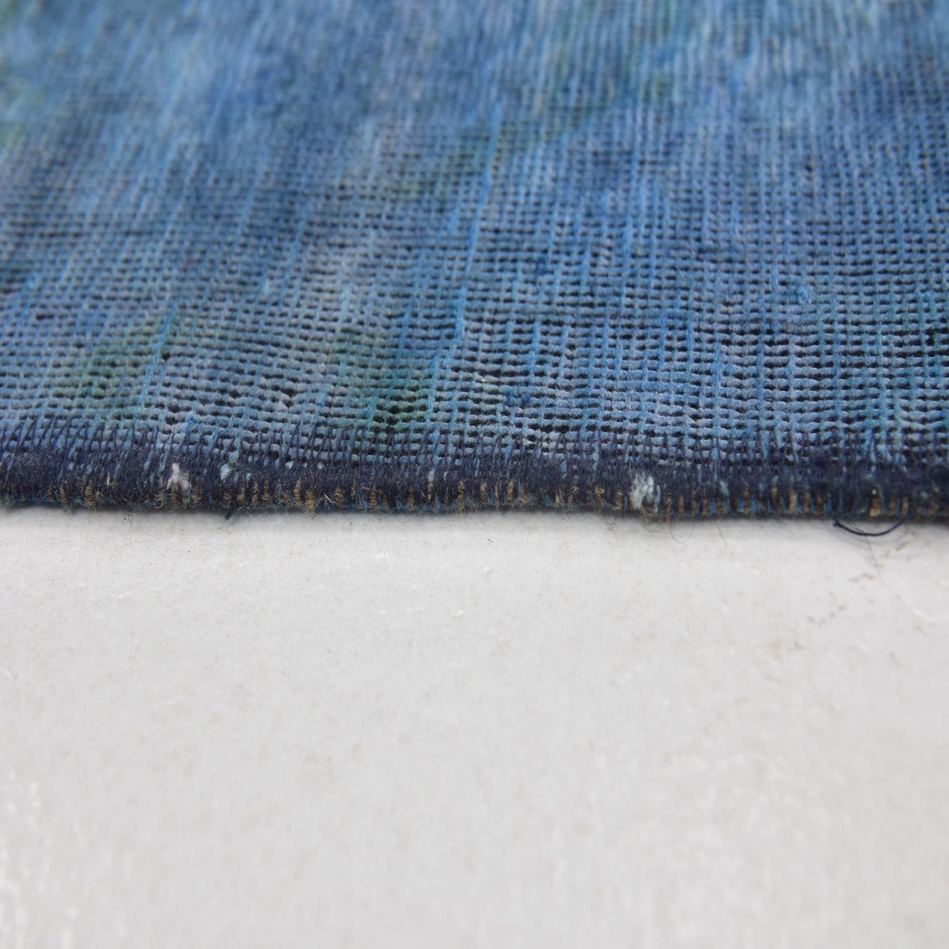 This Ultra Vintage collection rug boasts a contemporary yet timeless design, hand-knotted from 100% wool for durability and a luxurious feel. Its 9x12 stature makes it a commanding presence in any room. The rug features a compelling abstract pattern, combining shades of blue, navy blue, beige, and ivory, set against a dynamic blue background that serenely anchors the design.