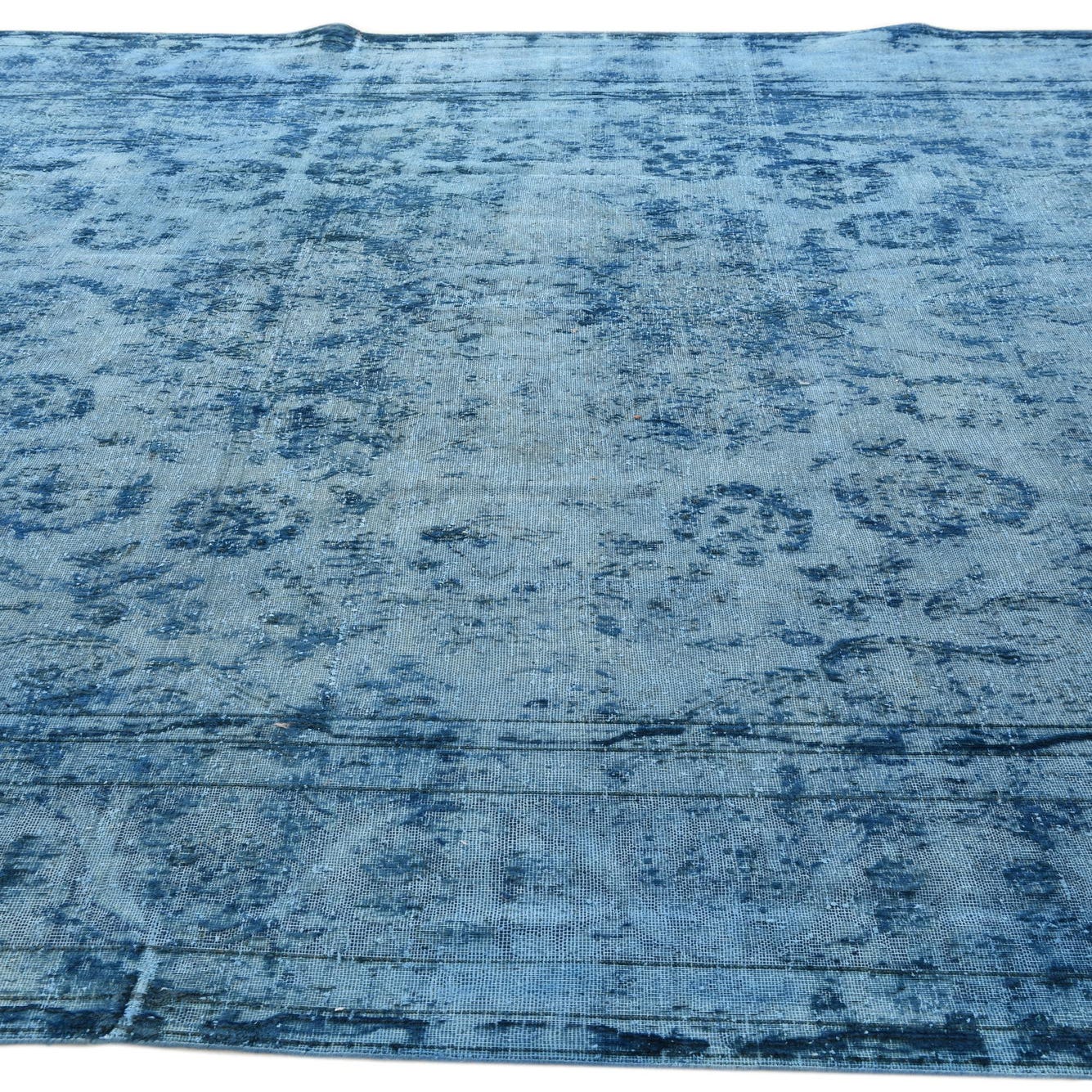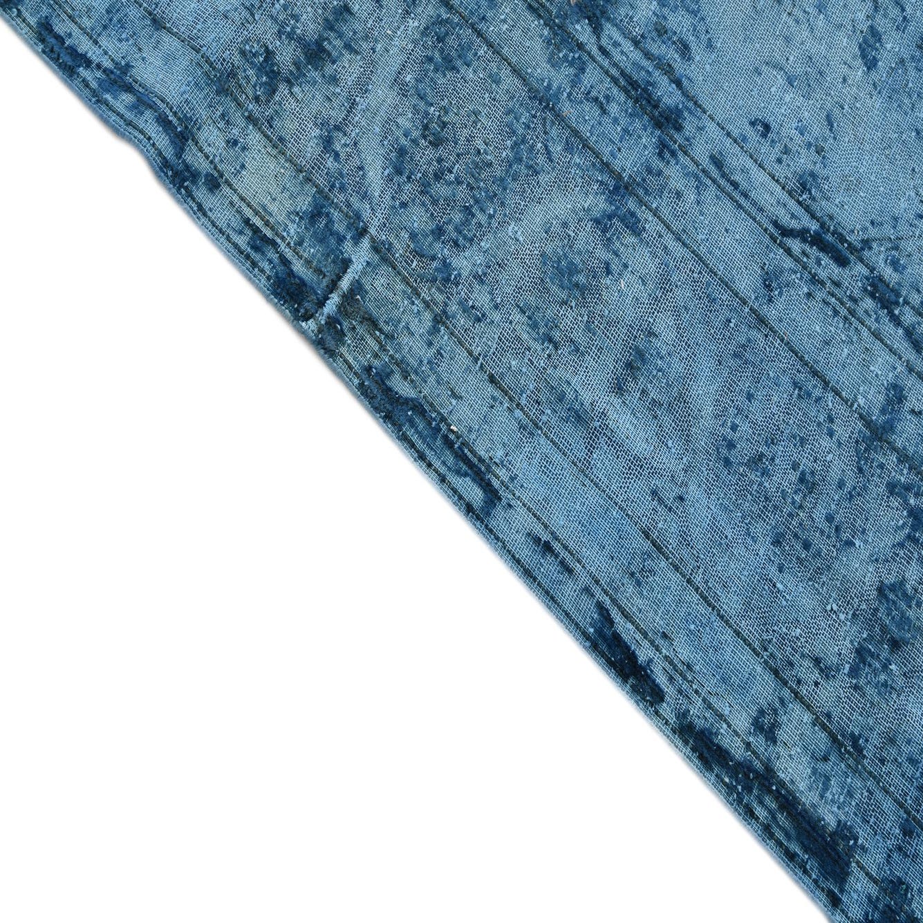 This Ultra Vintage collection rug embodies timeless sophistication with a modern twist, presented in a deep blue color palette. The hand-knotted construction from 100% wool ensures durability and a plush feel underfoot, complementing the rug's aesthetic allure. Measuring 9x12, the piece showcases a distressed traditional pattern. Hues of blue and light blue elegantly fade into each other, creating a sense of depth and character.