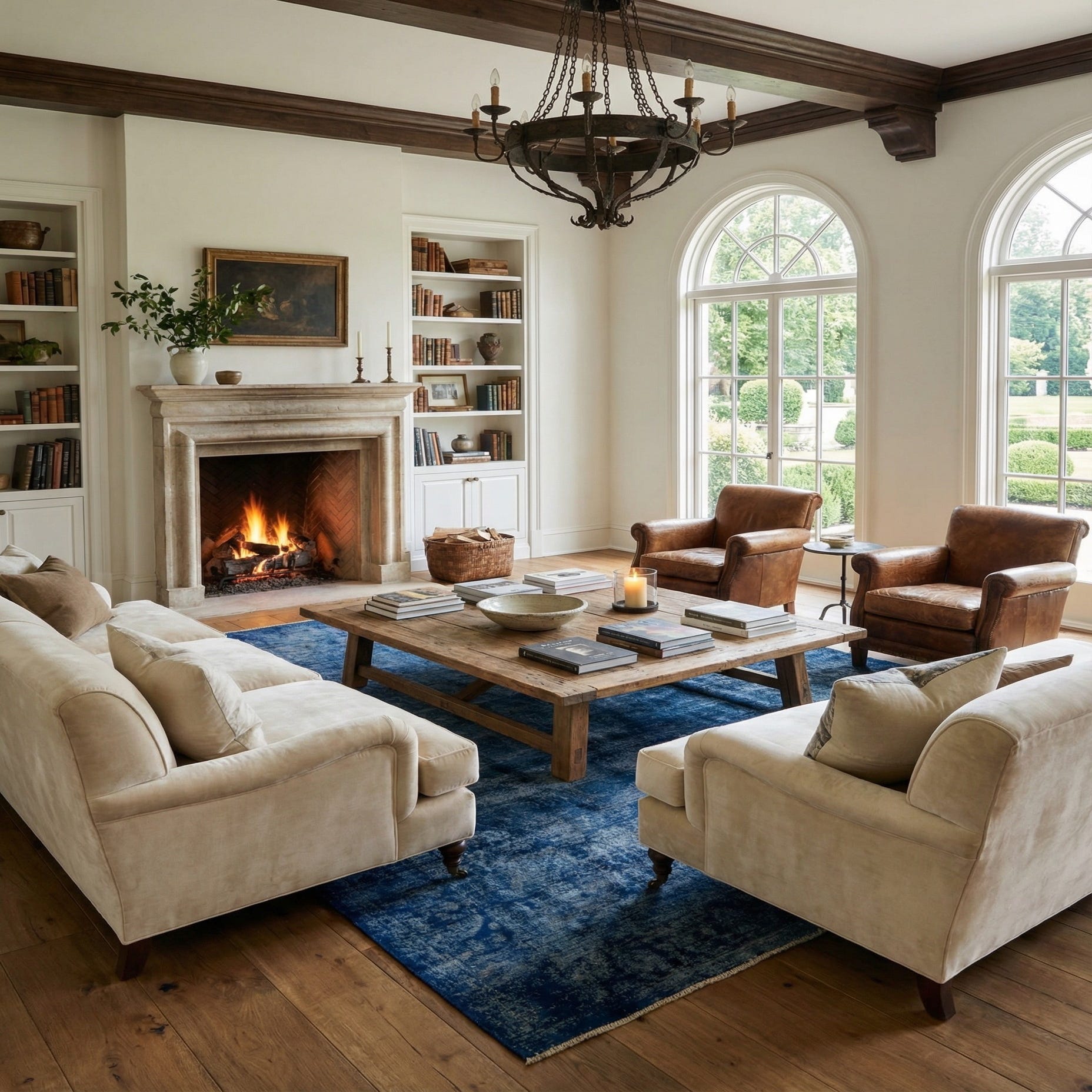 In a living room, this rug would pair beautifully with a mix of modern and traditional elements, such as clean-lined sofas and antique wooden coffee tables. In a dining room, it can complement both sleek contemporary dining sets and more robust, ornate pieces, bringing a refined sense of balance and sophistication to the space.