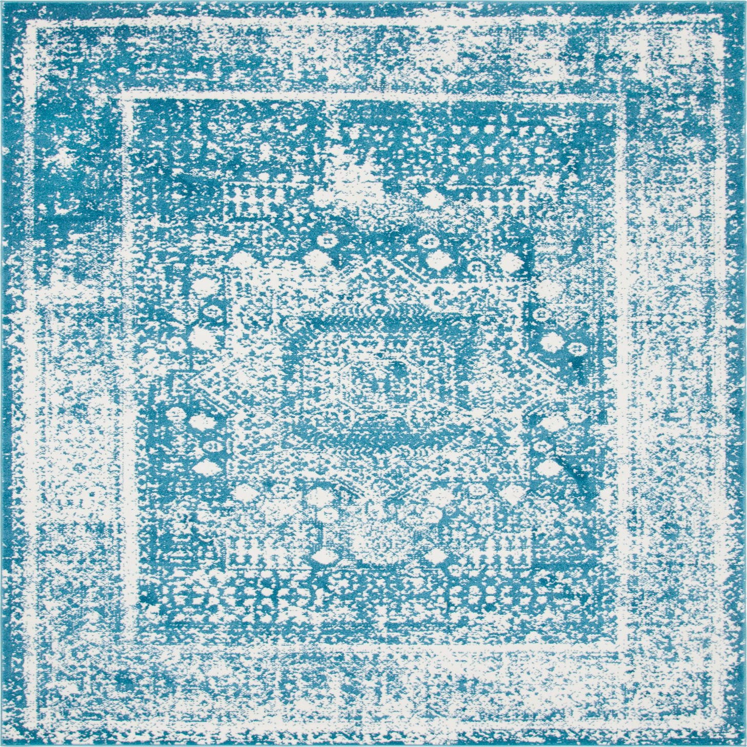 Primary color is Blue. Colors in this rug include: Blue, Ivory.