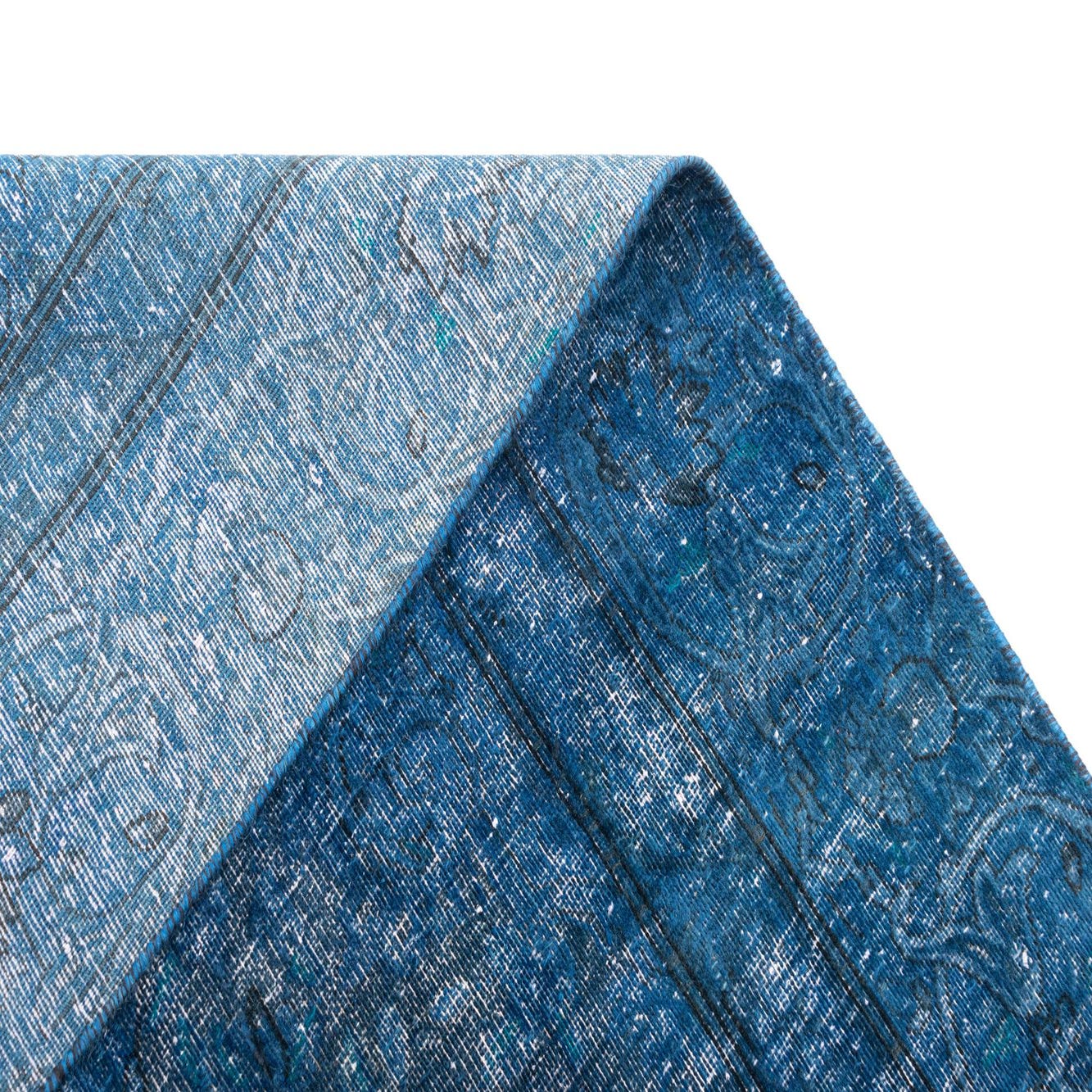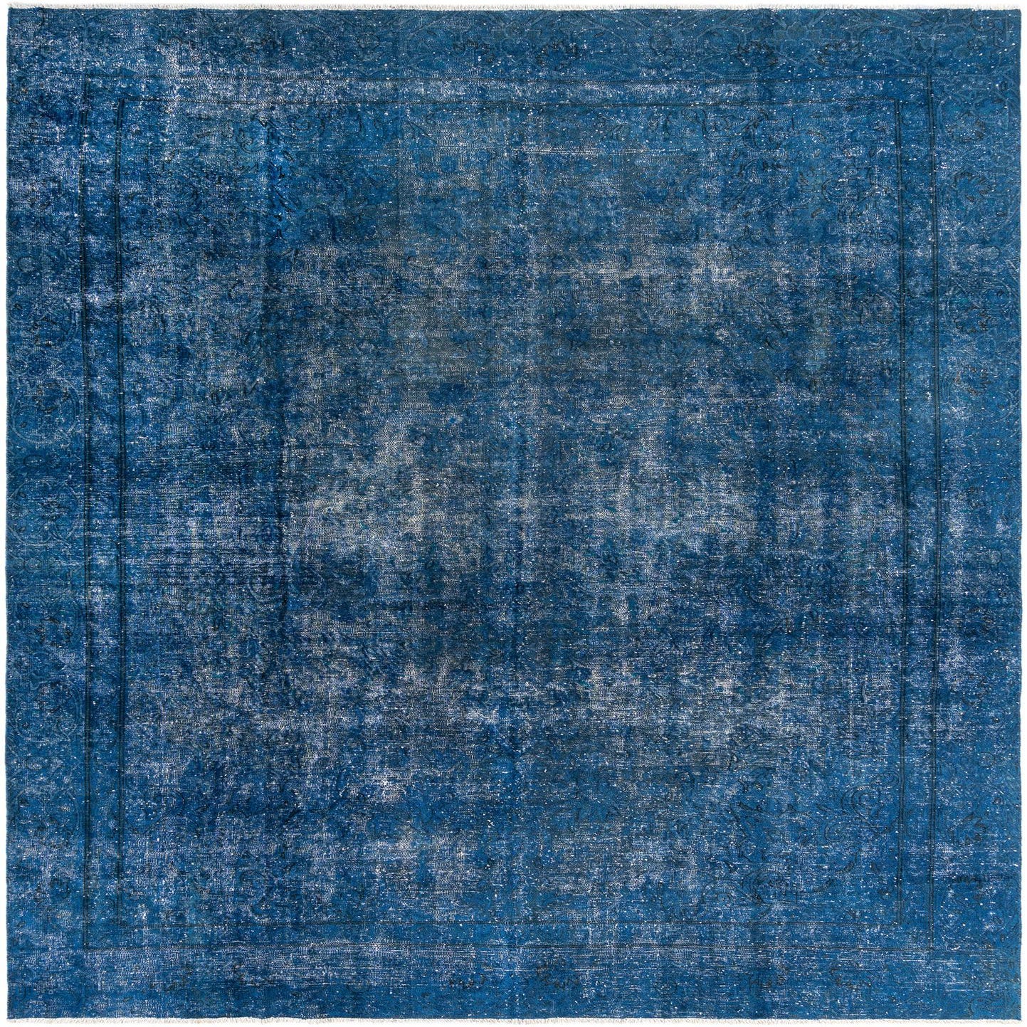 A 9x12 rectangular blue Persian wool rug with a distressed, vintage look, suitable for a living room.