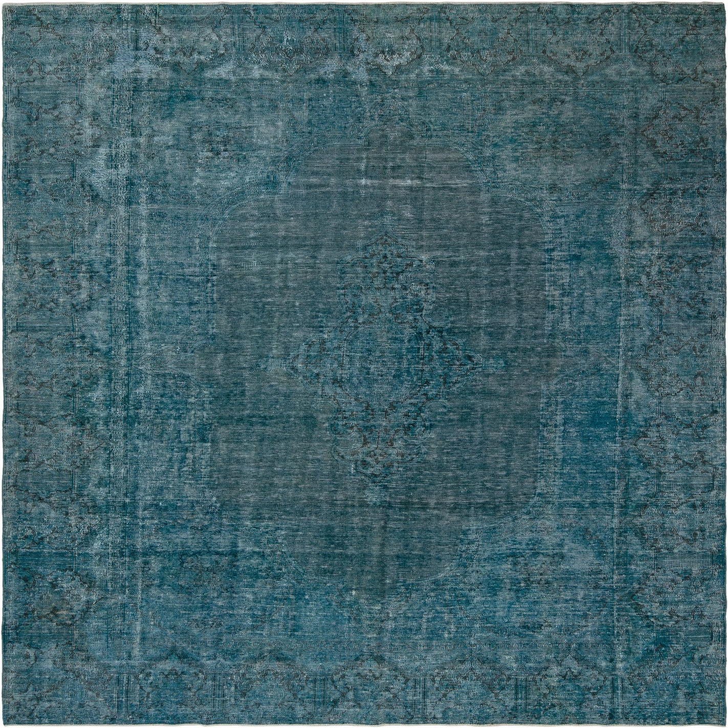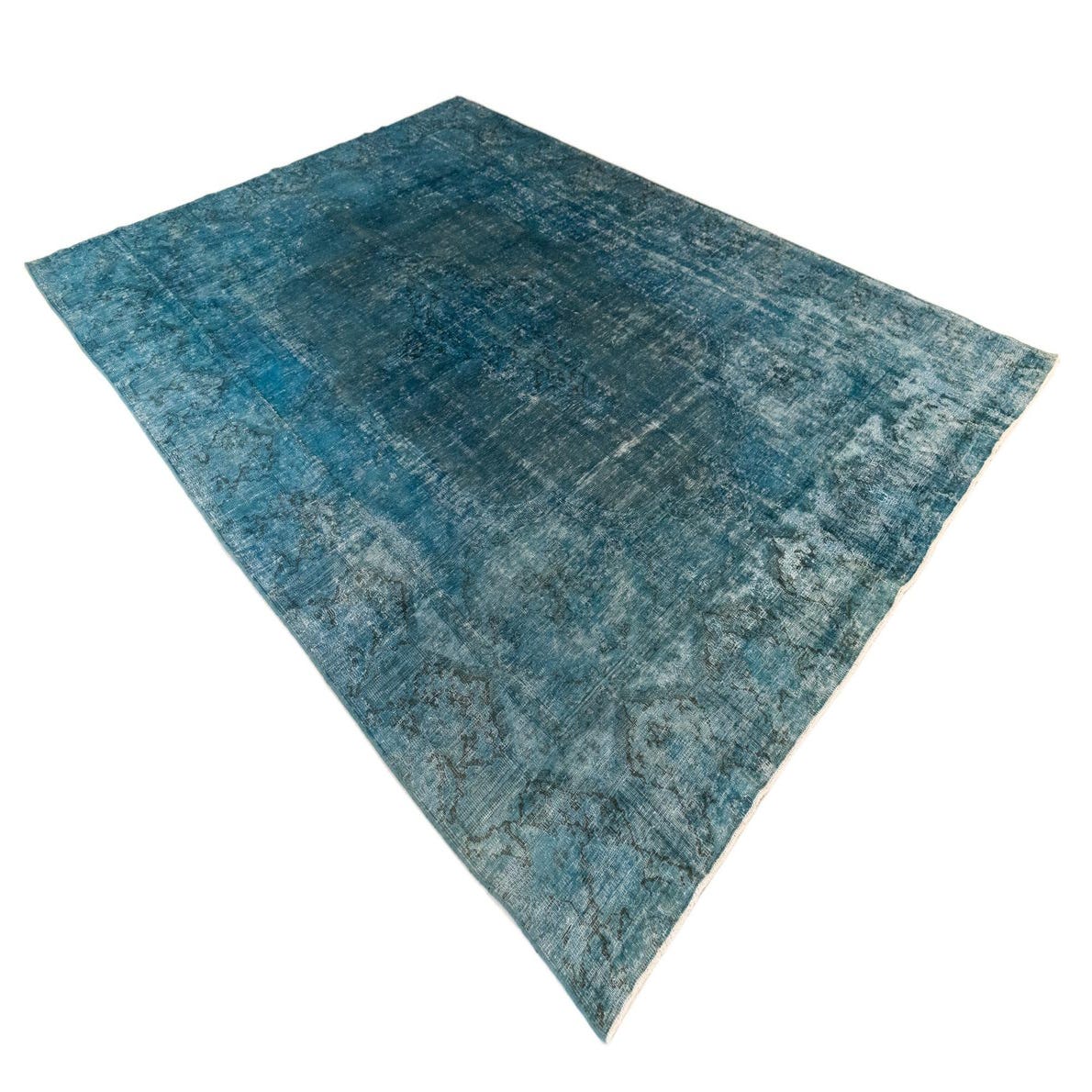 A 9x12 rectangular Rugs.com Vintage Royal Persian rug in varying shades of blue, featuring a distressed traditional pattern.