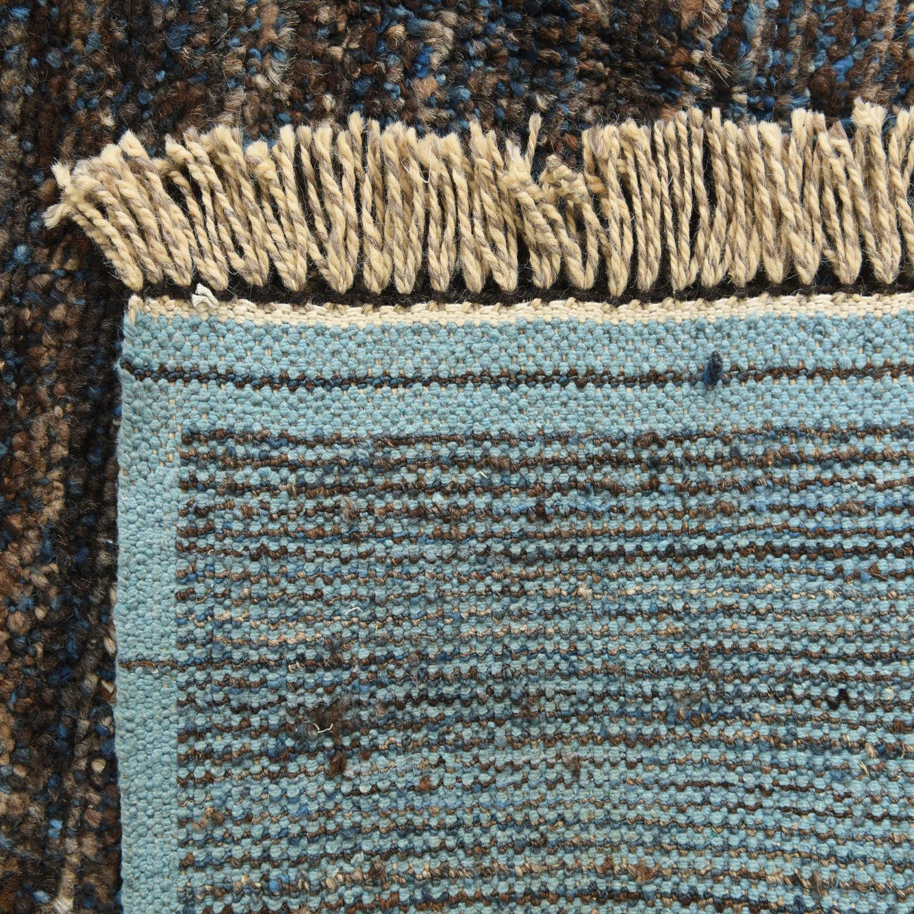 A 9x12 rectangular Moroccan shag rug in blues and browns, featuring a subtle abstract tribal pattern.
