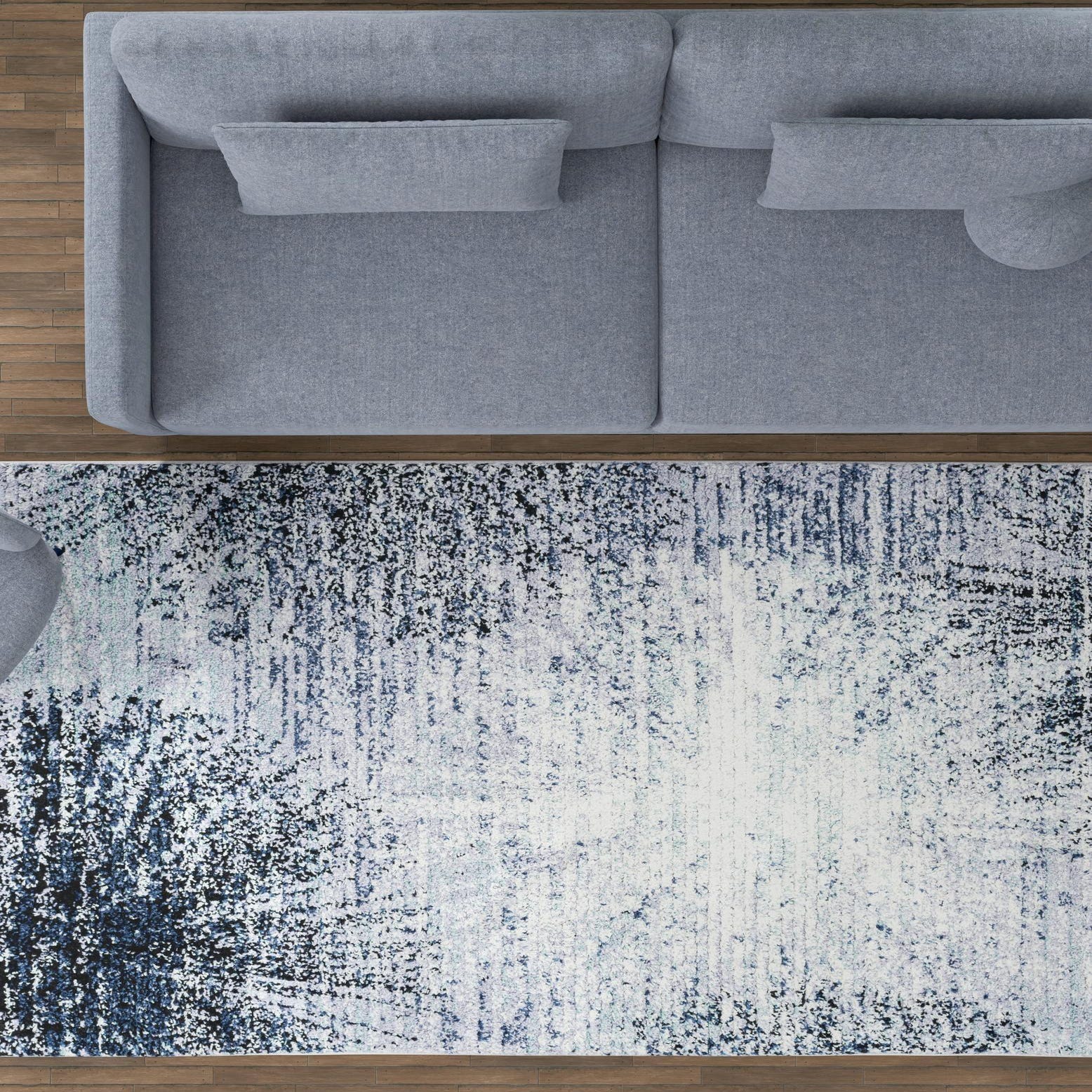 A 4x6 rectangular modern shag rug from the Tucson collection, featuring an abstract pattern in varying shades of blue and gray.