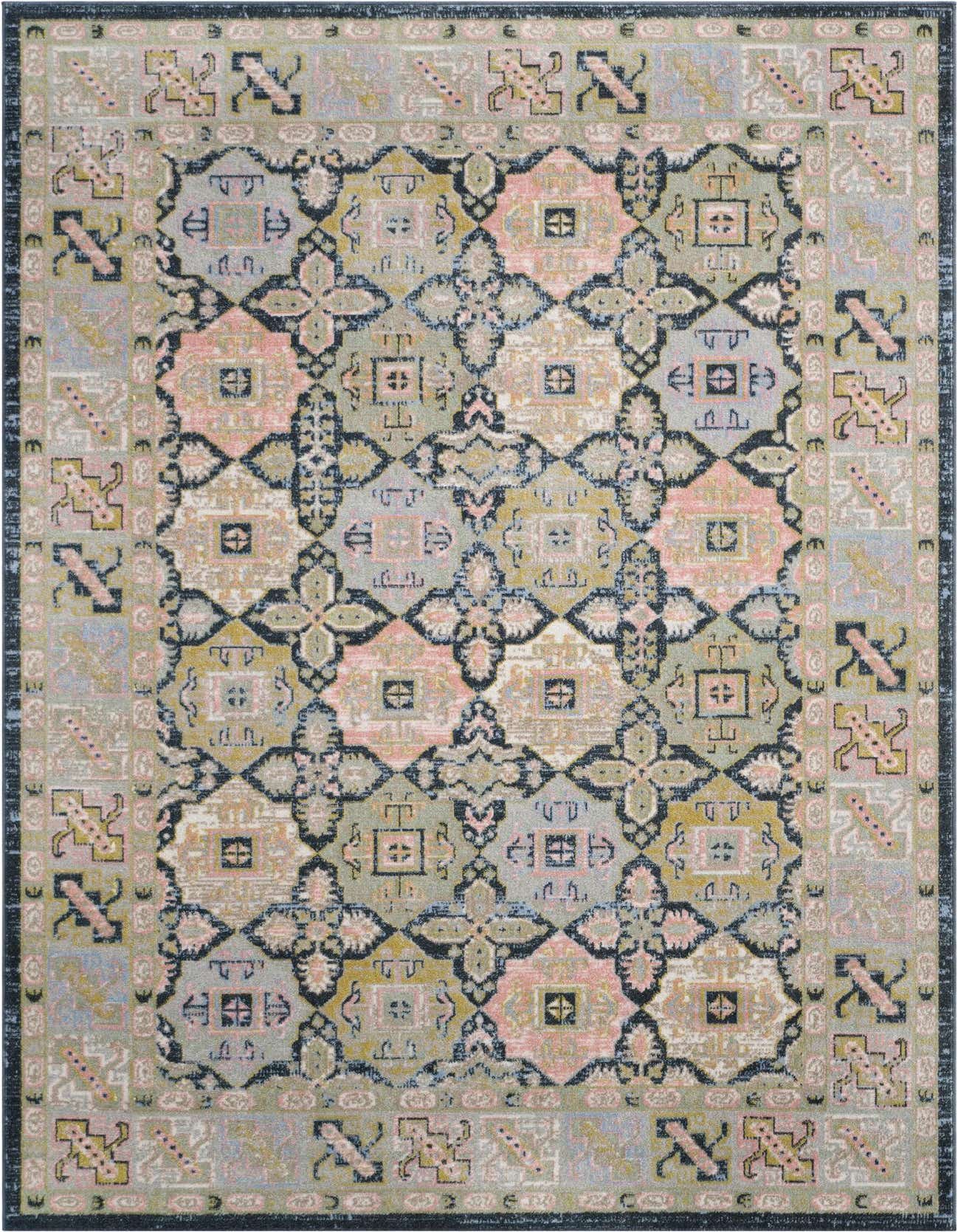 Primary color is Blue and Green. Colors in this rug include: Blue and Green, Ivory, Pink, Gray.