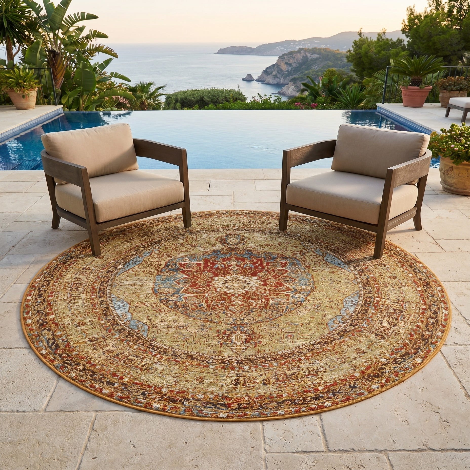 5' 3 x 5' 3 Easy-Clean Traditional Indoor / Outdoor Round Rug