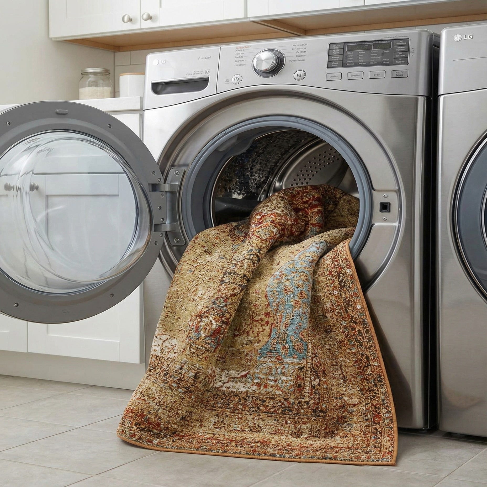 5' 3 x 7' Washable Traditional Indoor / Outdoor Rug
