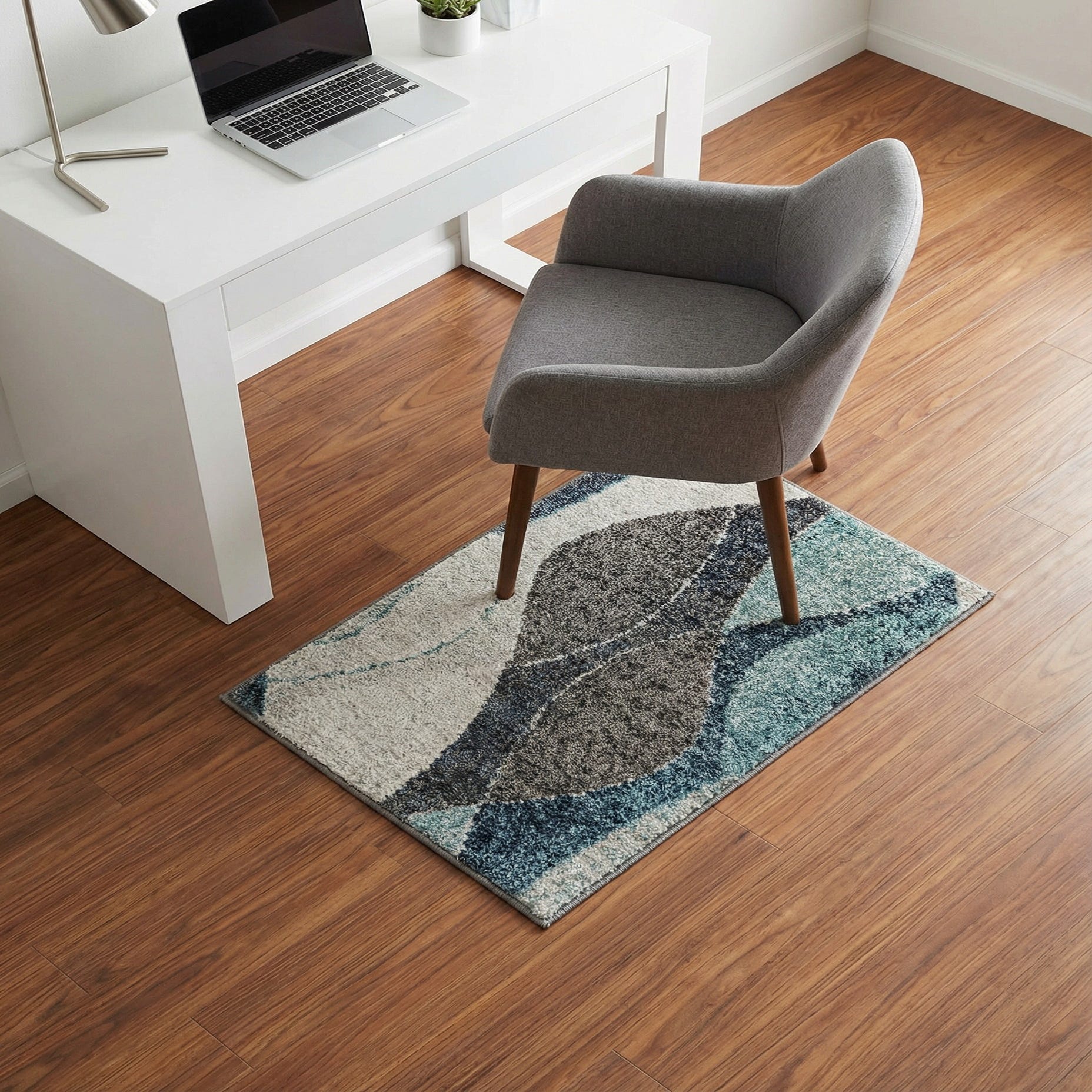 Machine-made from 100% polypropylene, the rug has a dense, cut-pile texture that feels soft and cushioned underfoot while retaining clear definition where colors meet. Place it in a small entry or beside a bed to add a touch of color and texture, or use it in front of a gray or navy sofa to tie together cool-toned decor. It pairs especially well with light oak or walnut furniture, matte black metal accents, and coastal or mid-century modern schemes that embrace clean lines and layered textures.
