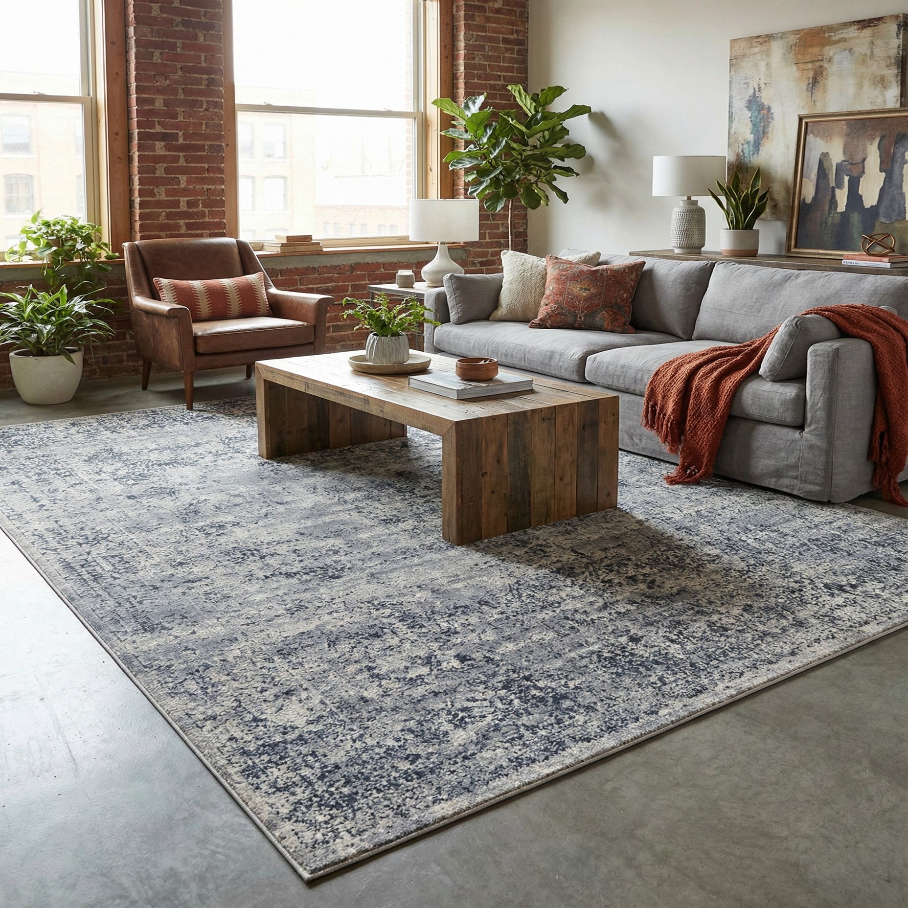Place this rug as the grounding layer in a neutral living room beneath a low coffee table, use it to anchor a bed in a serene bedroom scheme, or soften a home office with cooler tones. Its understated, transitional styling pairs well with coastal and modern farmhouse palettes, crisp Scandinavian interiors, and contemporary spaces that benefit from a calming, textured base. Works well over hardwood, tile, or painted floors to add warmth and visual depth without overwhelming the room.