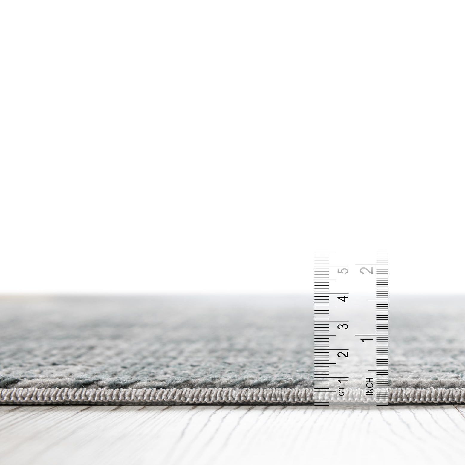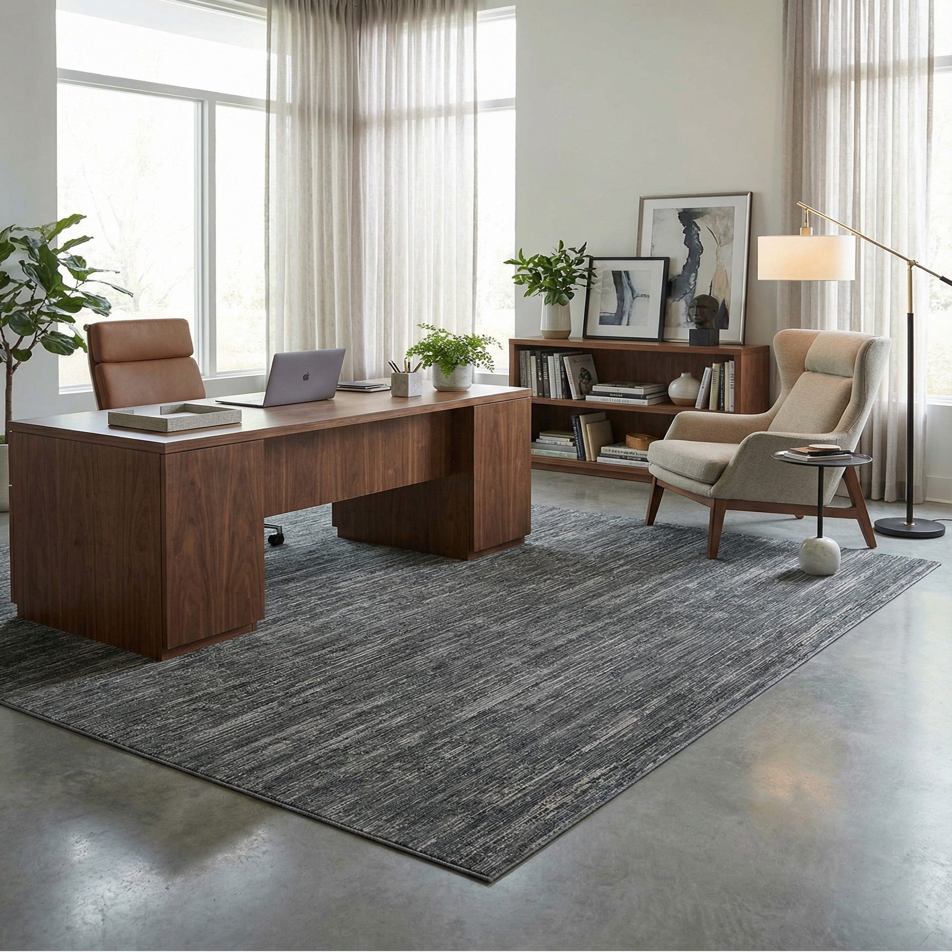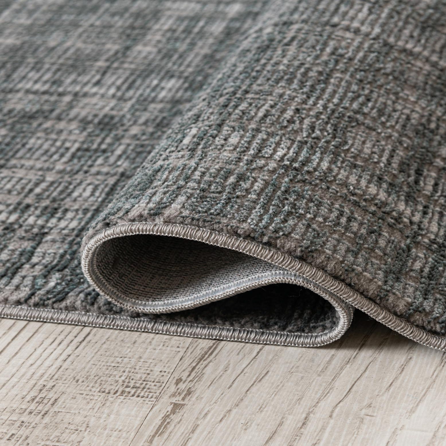 A rectangular 8x10 indoor rug featuring a textured, abstract pattern in varying shades of blue and gray.