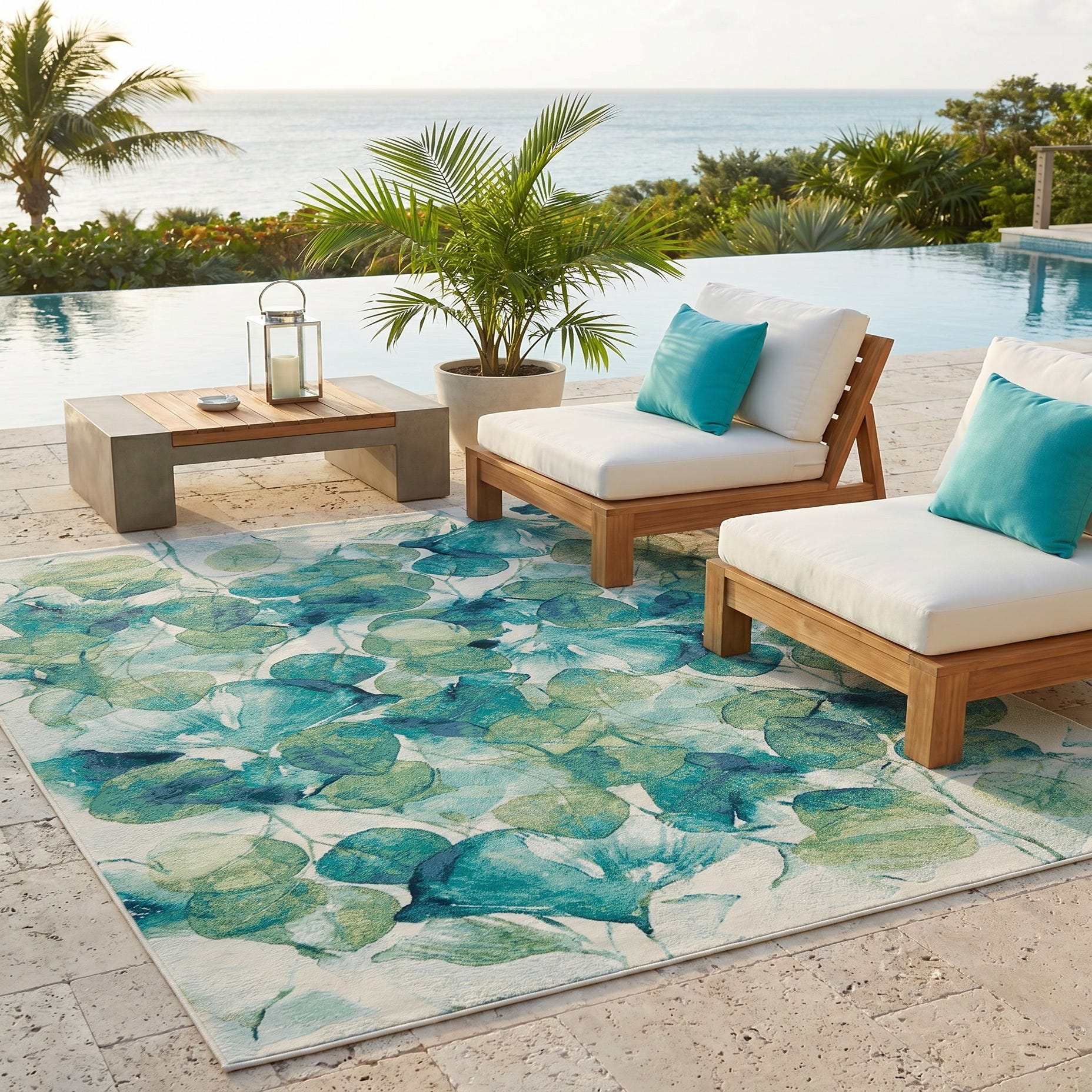 9' x 12' Easy-Clean Botanical Indoor / Outdoor Rug