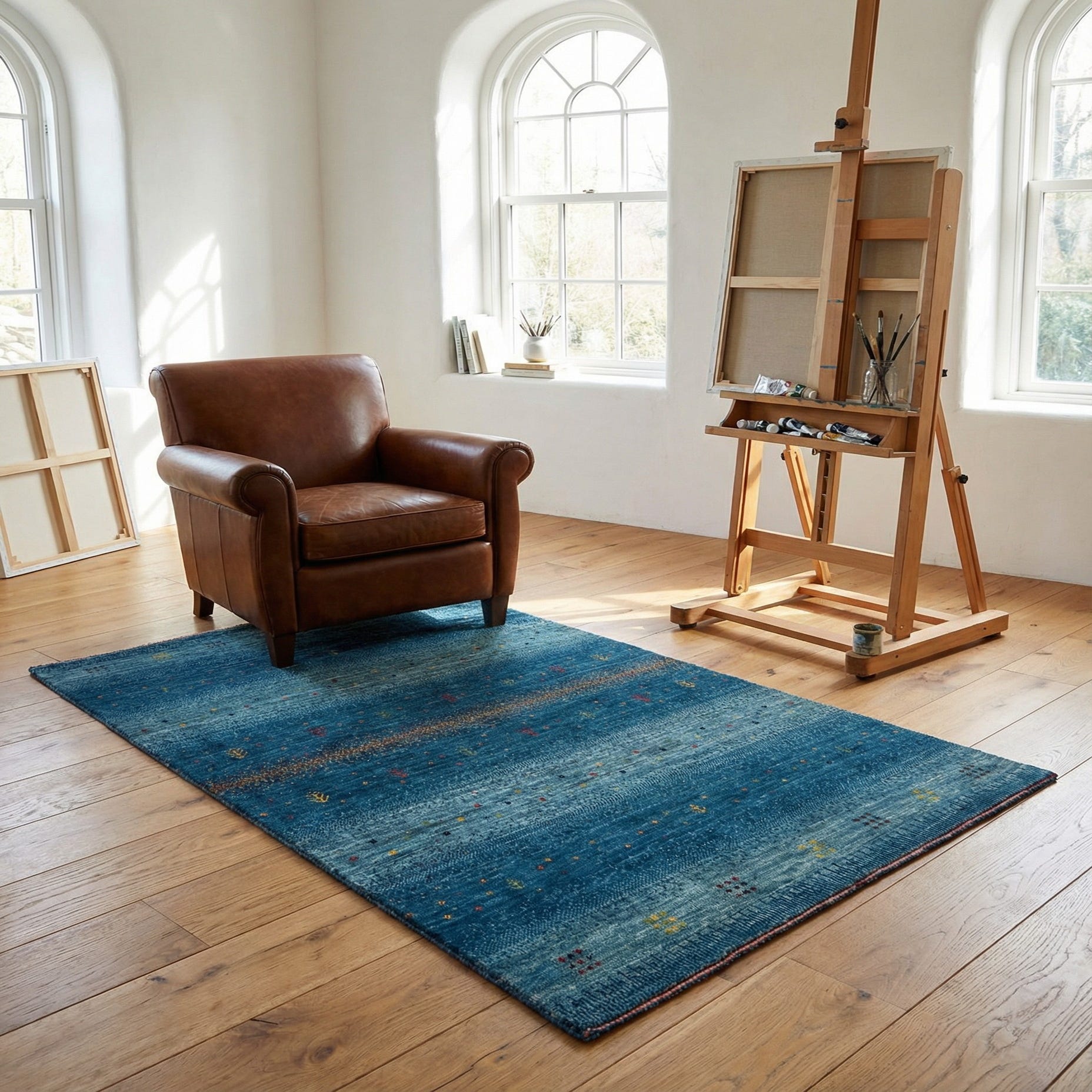 Primary color is Blue. Colors in this rug include: Blue, Rectangle.