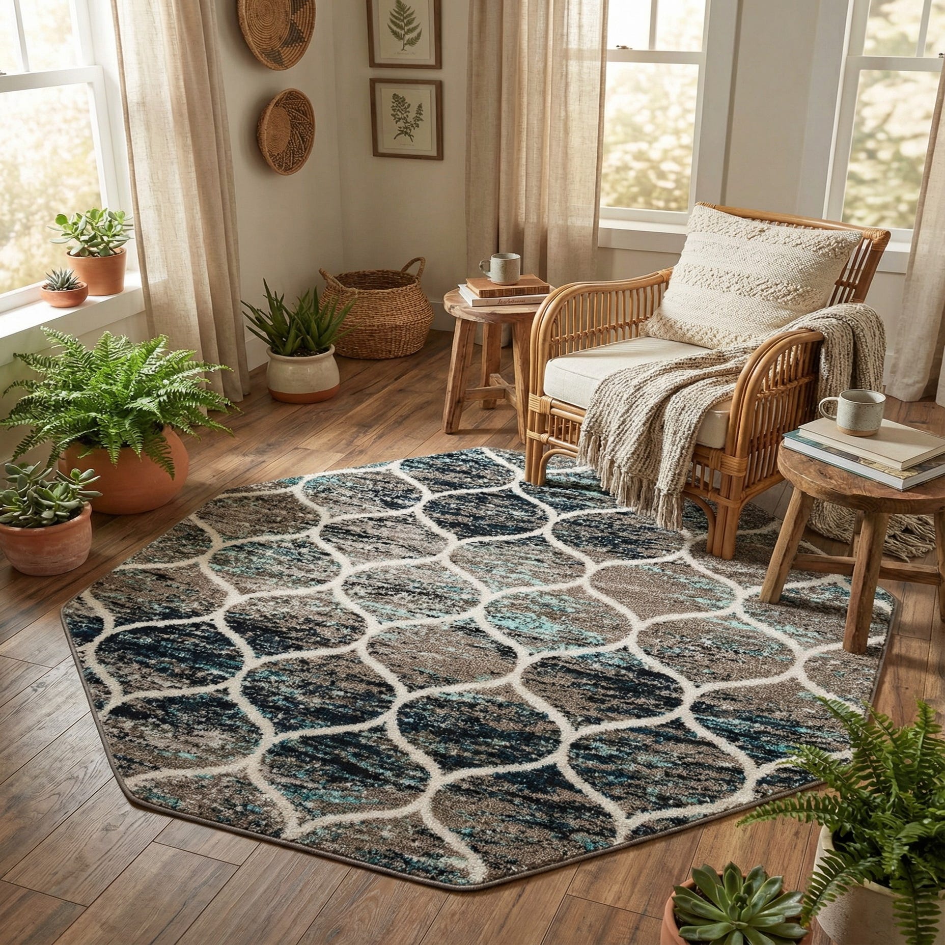 5' 3 x 5' 3 Lattice Frieze Octagon Rug