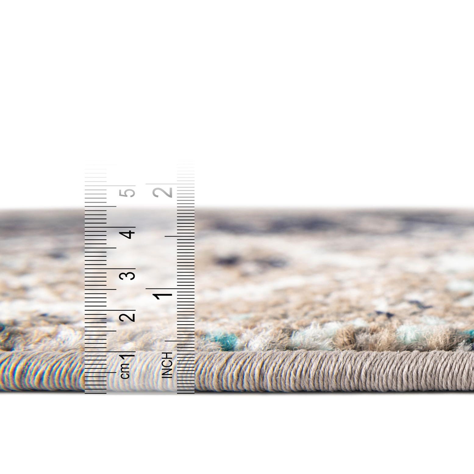 Machine-made from 100% polypropylene, the pile has a low-to-medium density with a smooth, slightly plush hand that feels comfortable underfoot. Its balanced mix of cool blues and warm browns makes it a strong choice for a transitional living room or layered beneath a modern sofa, pairs well with natural wood tones or leather seating, and can anchor a home office or tucked under a breakfast table in a casual dining area.