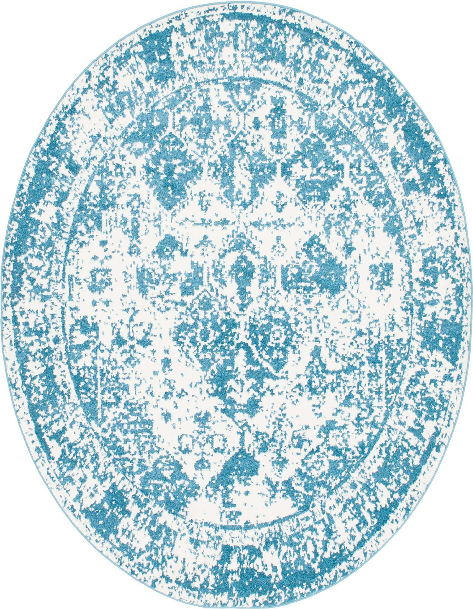 Primary color is Blue. Colors in this rug include: Blue, Ivory.
