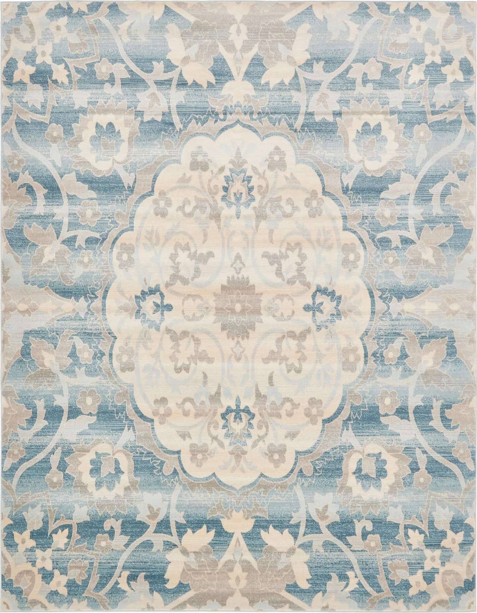 Primary color is Blue. Colors in this rug include: Blue, Beige, Brown, Light Blue.