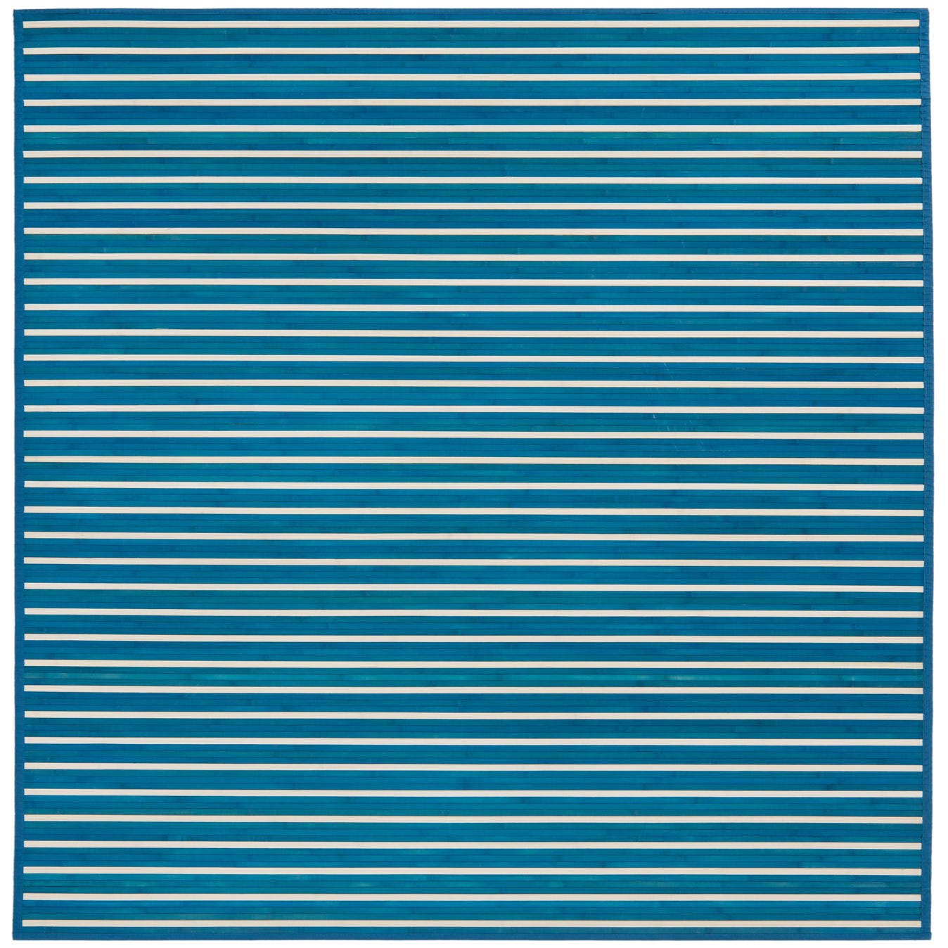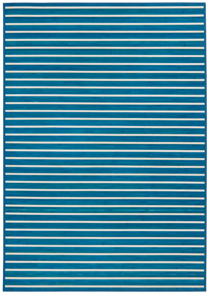 The Bamboo Collection area rug presents a crisp and modern design, featuring a blue and white striped pattern that brings a sense of order and calm to any space. The machine-woven construction of 100% bamboo provides a smooth texture and a natural sheen, enhancing the vibrancy of the blue hues against the white background. Measuring 5 feet by 8 feet, this rug offers a sizable dimension to anchor living spaces, home offices, or bedrooms.