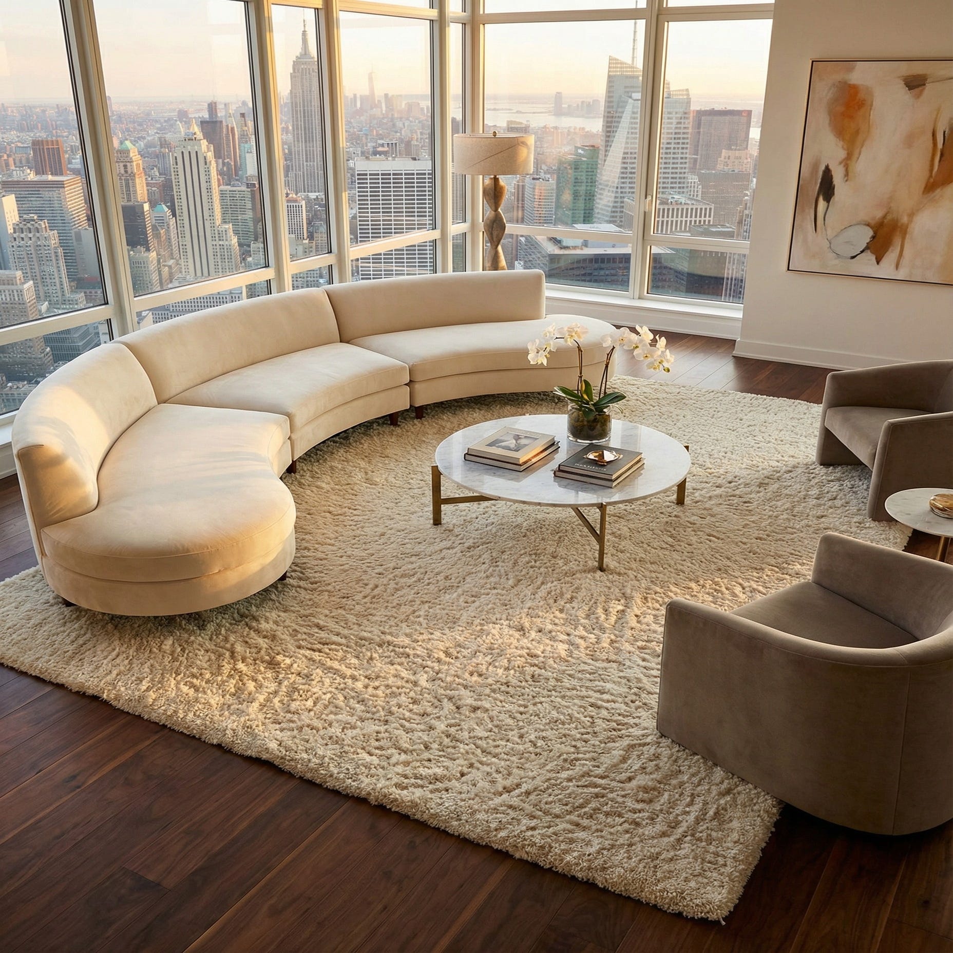The neutral bone and beige palette makes this piece a versatile anchor for a variety of interiors. Place it under a low-profile sectional to warm a contemporary living room, layer it in a Scandinavian-style space for added softness against hardwood floors, or position it in a bedroom to extend a cozy, inviting footprint at the foot of the bed. Its relaxed texture also works well in casual reading nooks or a minimalist lounge where comfort and understated style are priorities.