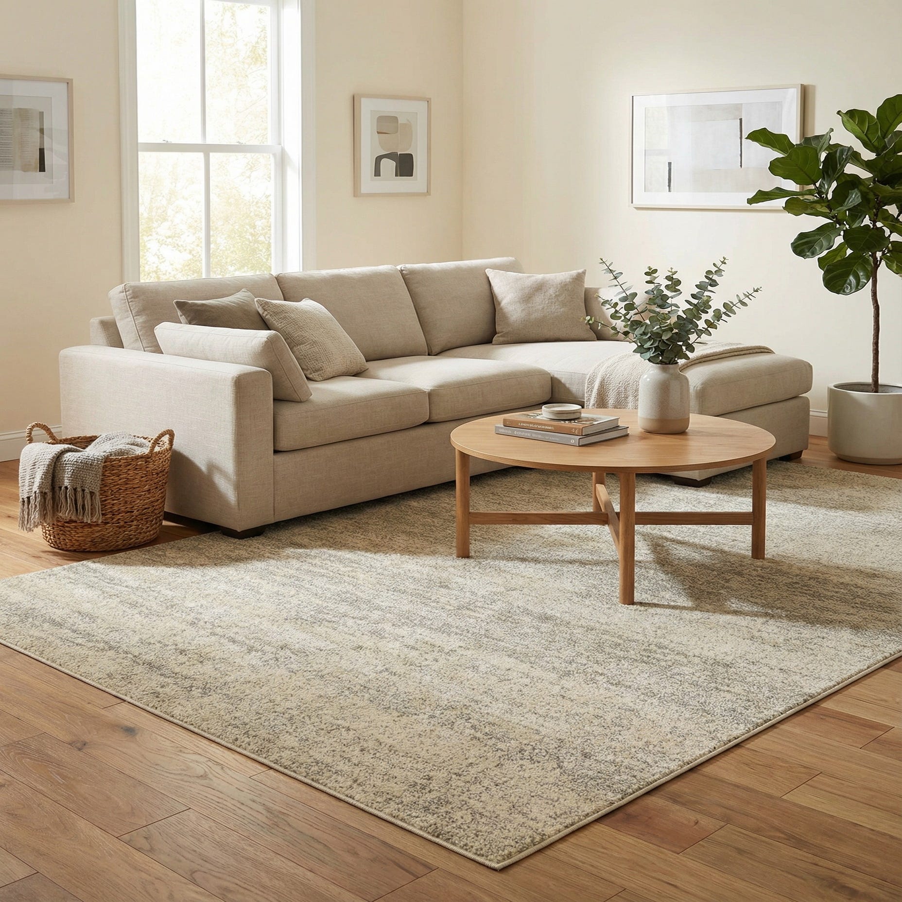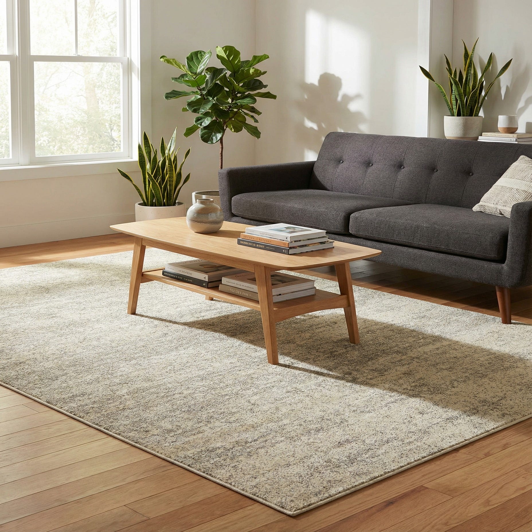 Machine-made from 100% polypropylene, the rug offers a uniform weave and consistent finish. Its calm palette and understated pattern work well in modern, Scandinavian, coastal, or contemporary farmhouse schemes—use it to anchor a seating area, layer beneath a bed for added softness, or center it in a home office to bring warmth and texture without overwhelming the room.
