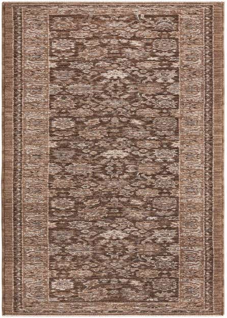 Primary color is Brown. Colors in this rug include: Brown, Gray, Ivory.