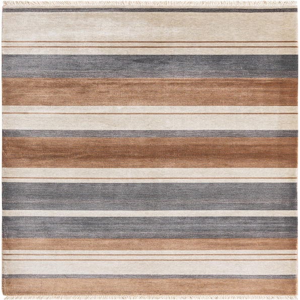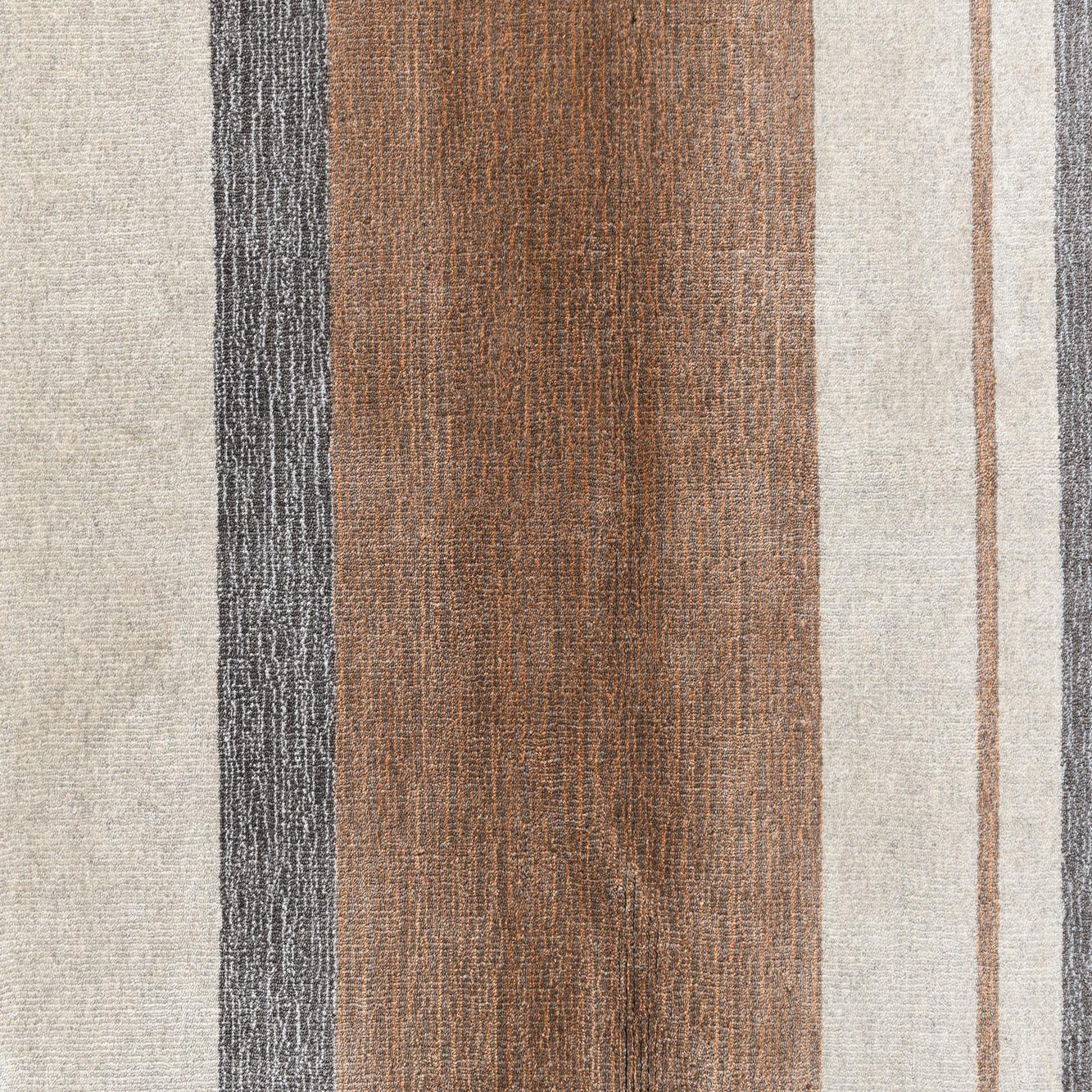 This runner's clean-lined aesthetic allows it to integrate seamlessly into numerous décor styles, from contemporary to transitional interiors. Its elongated form is particularly well-suited for hallways, elongating these passages and adding visual interest without overwhelming the space. The rug could also serve as a defining element in a minimalist setting where its color scheme harmonizes with natural wood finishes and understated textiles, or as a complement to more eclectic interiors with its subtle, earth-toned stripes providing a grounding contrast to bolder furnishings.