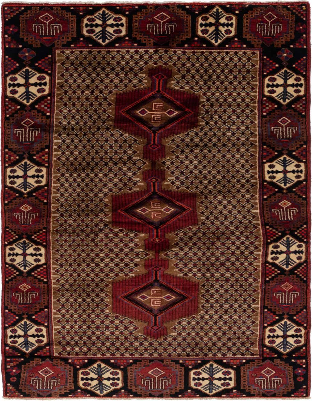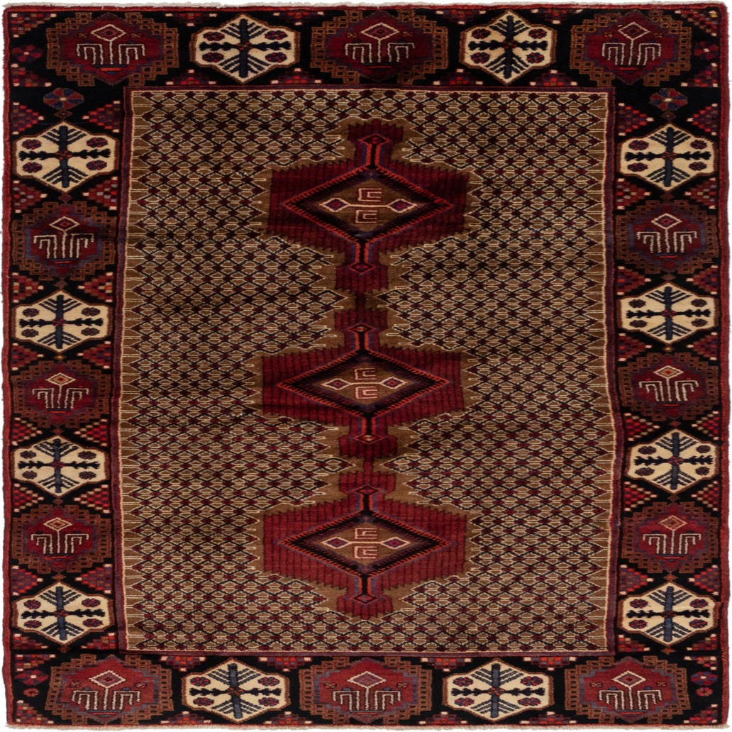 Primary color is Brown. Colors in this rug include: Brown, Beige, Black, Burgundy, Ivory, Olive, Pink, Blue.