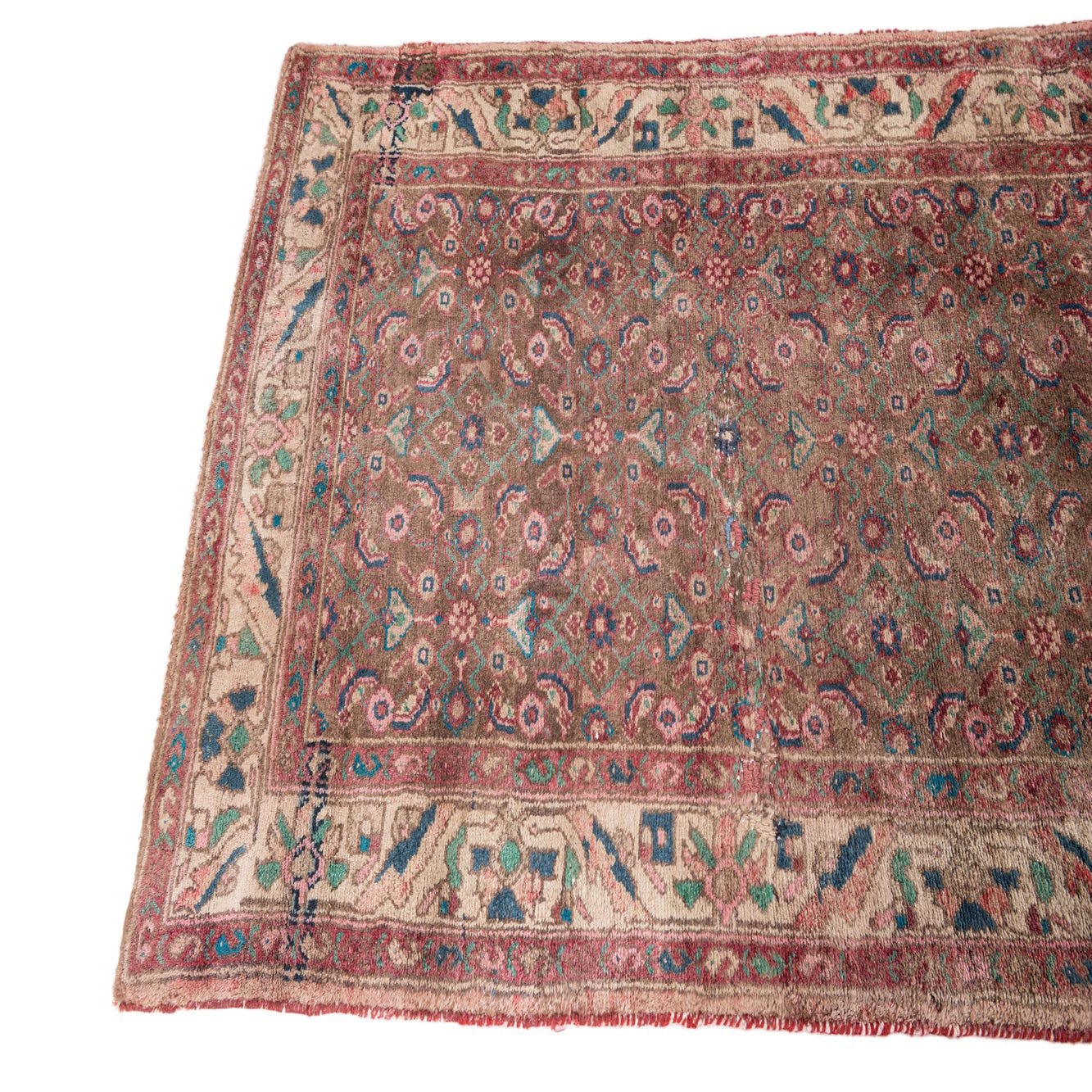 This Persian Ultra Vintage rug is an antique Persian Rug that has been washed, over-dyed, and then shaved down to a low pile. Look at the detail pictures to fully appreciate the uniqueness of this piece.