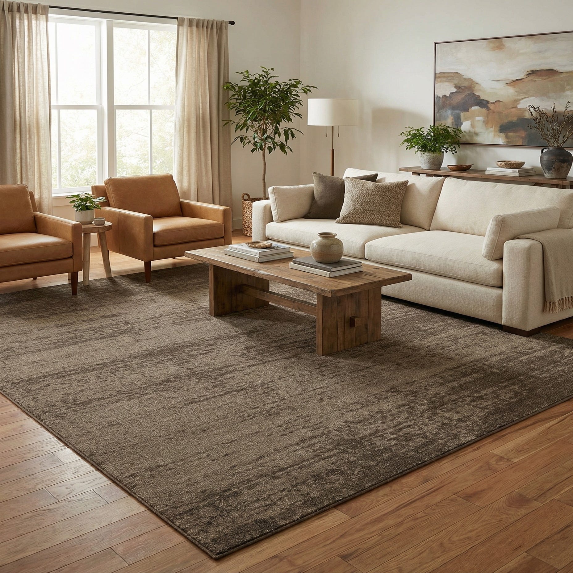 A 10x13 rectangular Angelica rug in varying shades of brown and tan, featuring a contemporary, textured solid pattern.