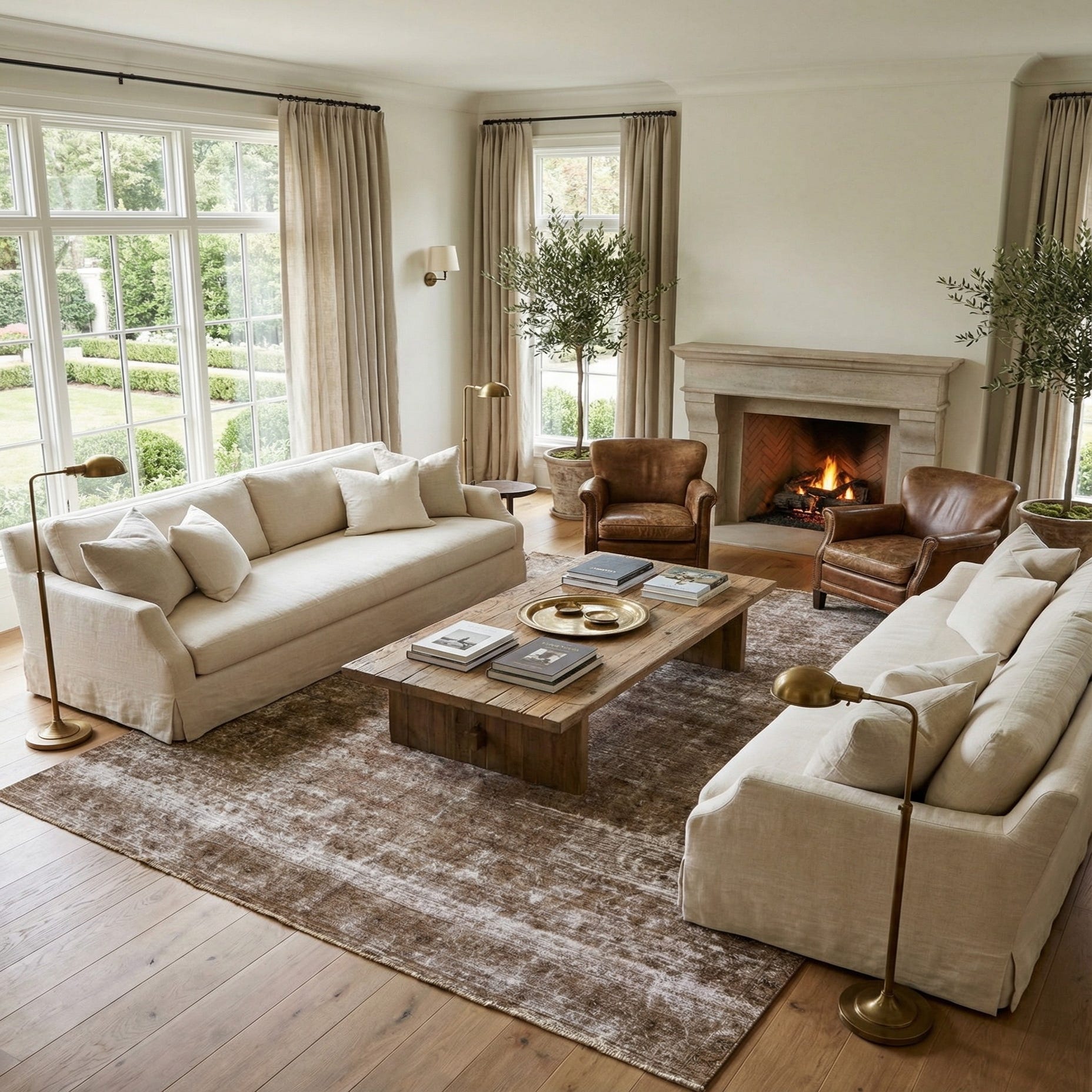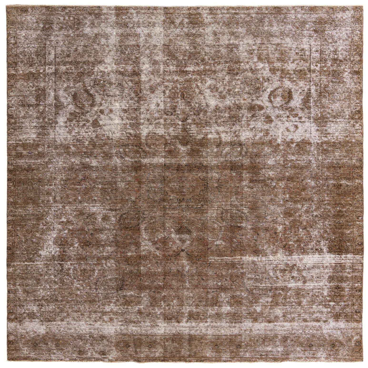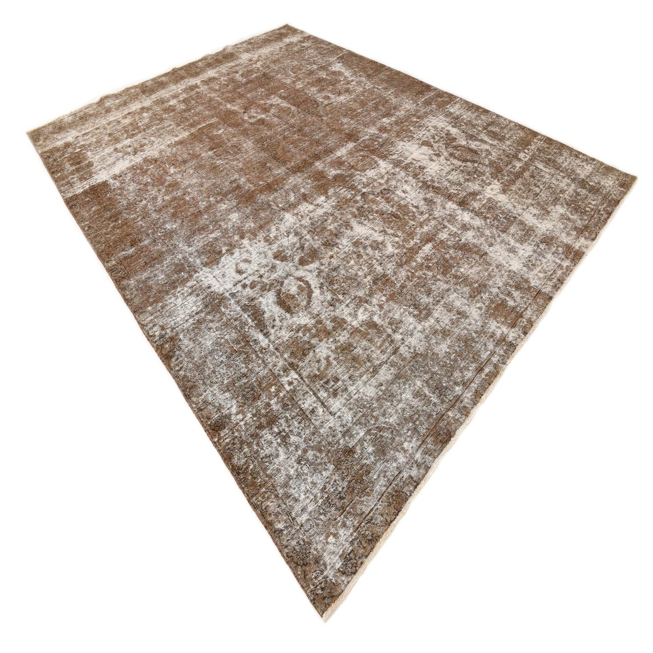 A 10x13 rectangular Ultra Vintage wool rug in browns and tans, featuring a distressed Persian-inspired pattern.
