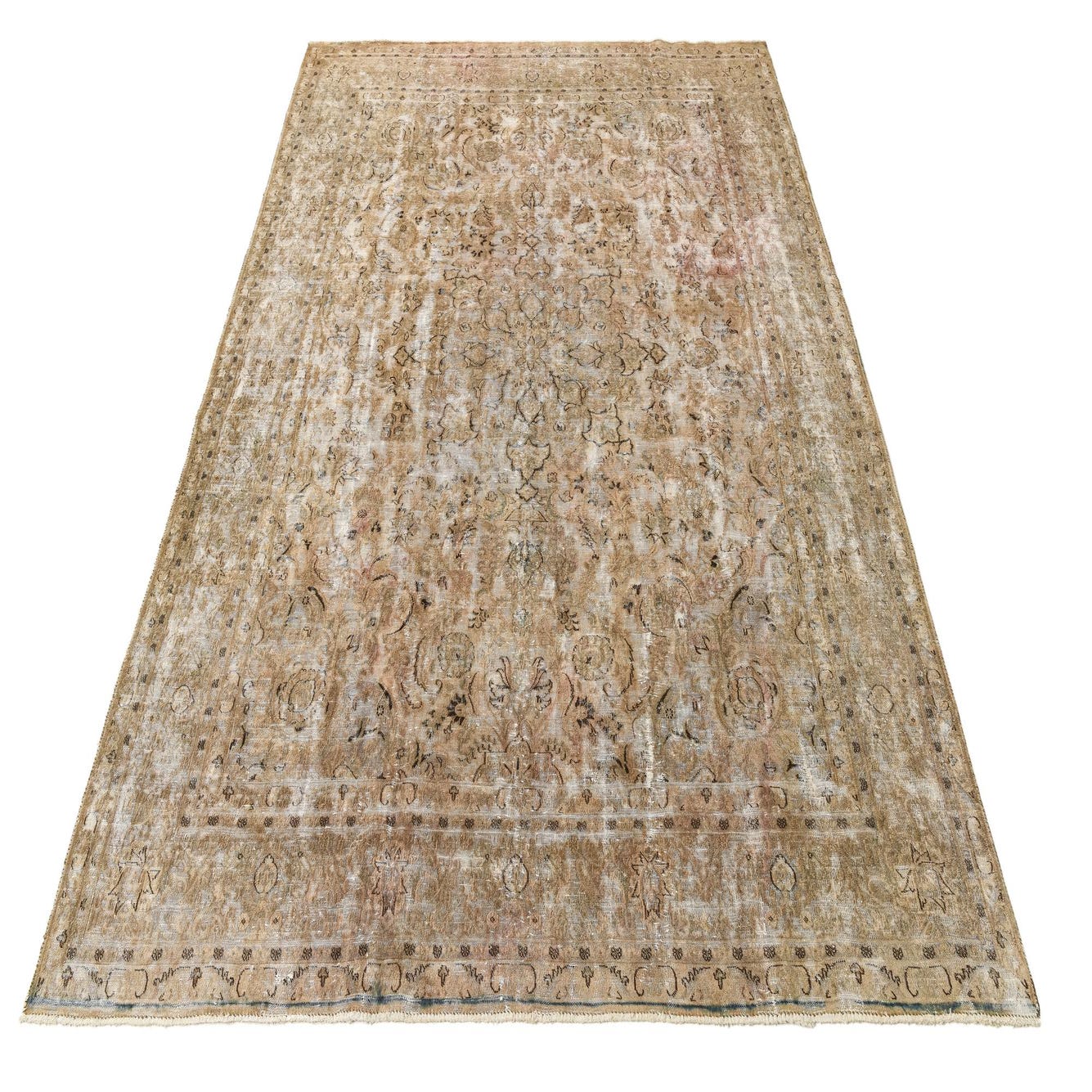 This Persian Ultra Vintage rug is an antique Persian Rug that has been washed, over-dyed, and then shaved down to a low pile. Look at the detail pictures to fully appreciate the uniqueness of this piece.