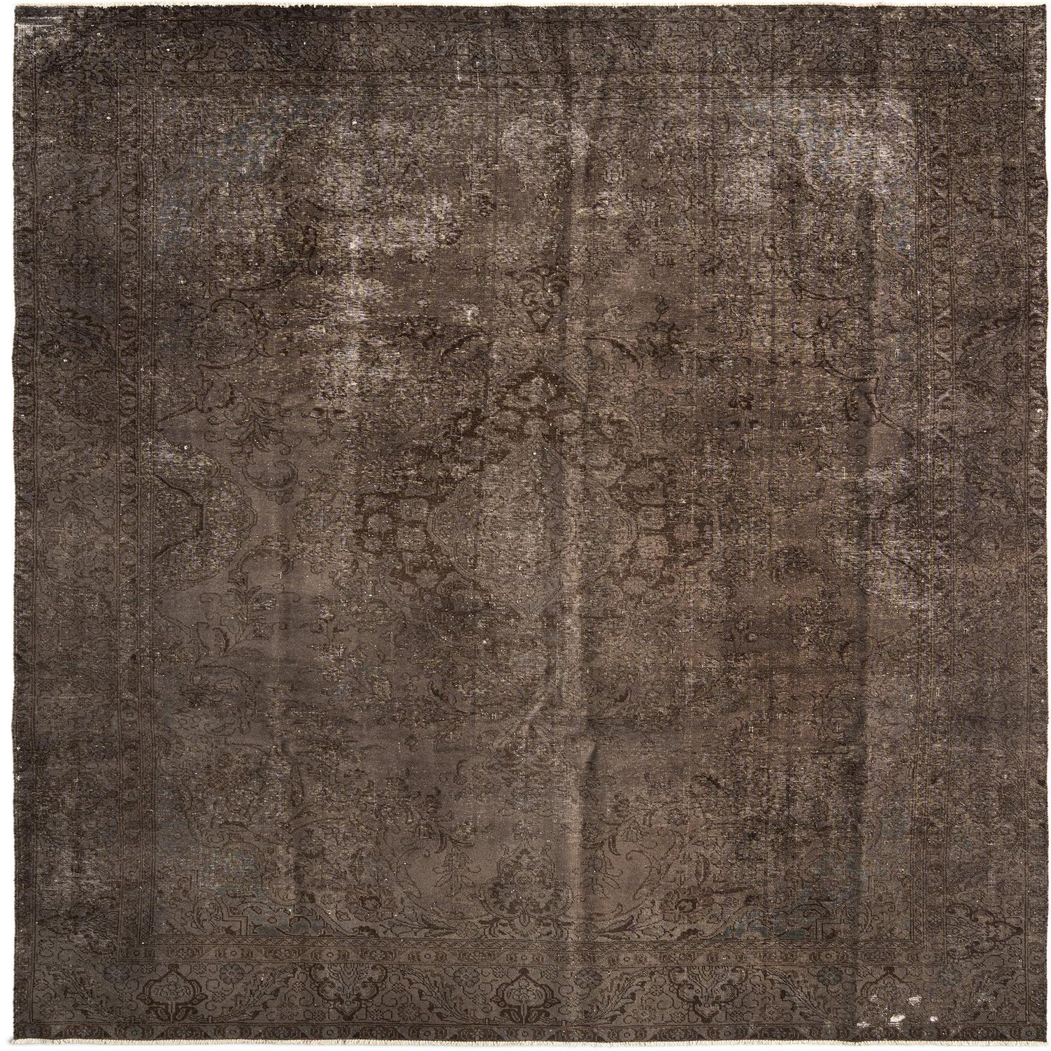A 10x13 rectangular brown Persian wool rug with a distressed, faded traditional pattern, suitable for a living room.