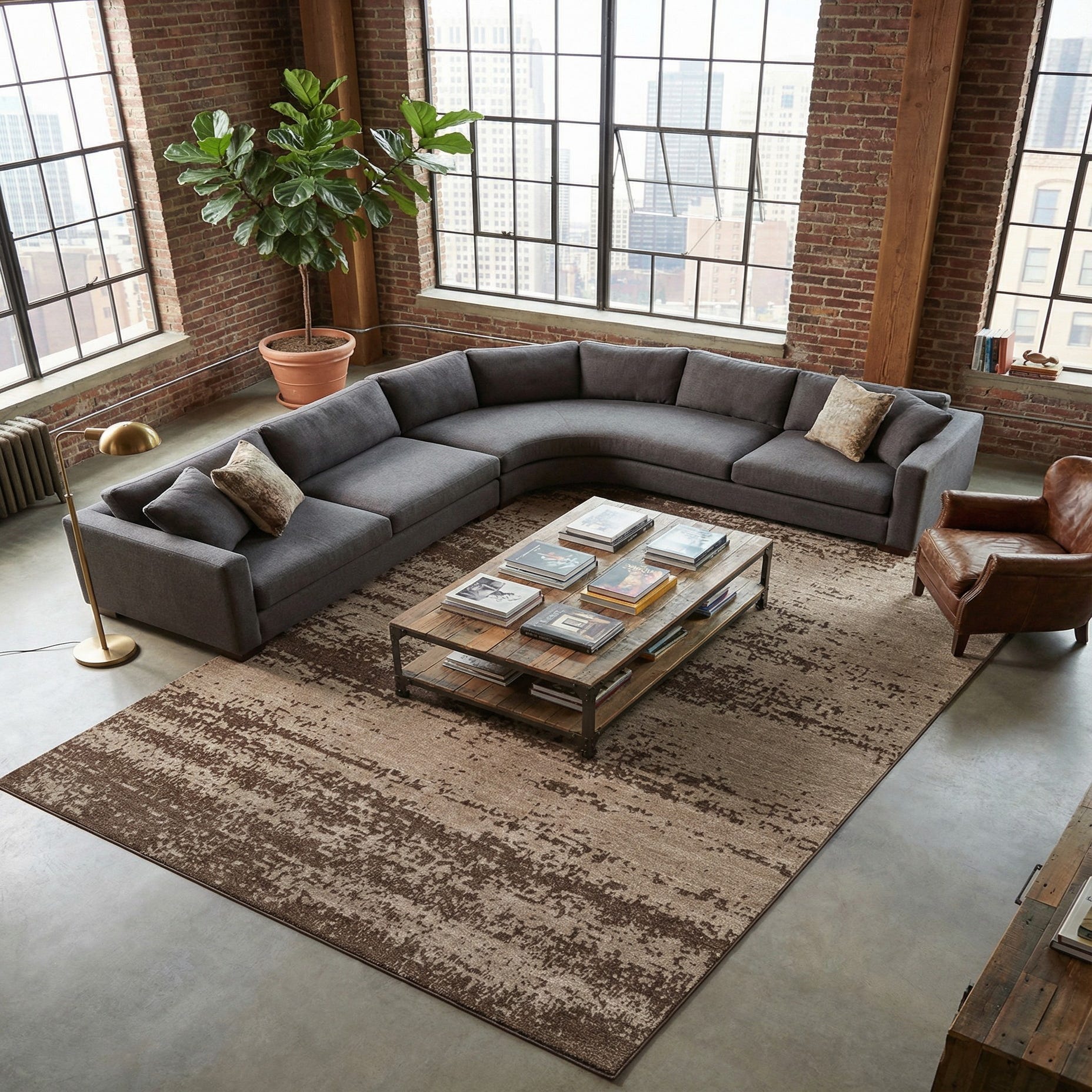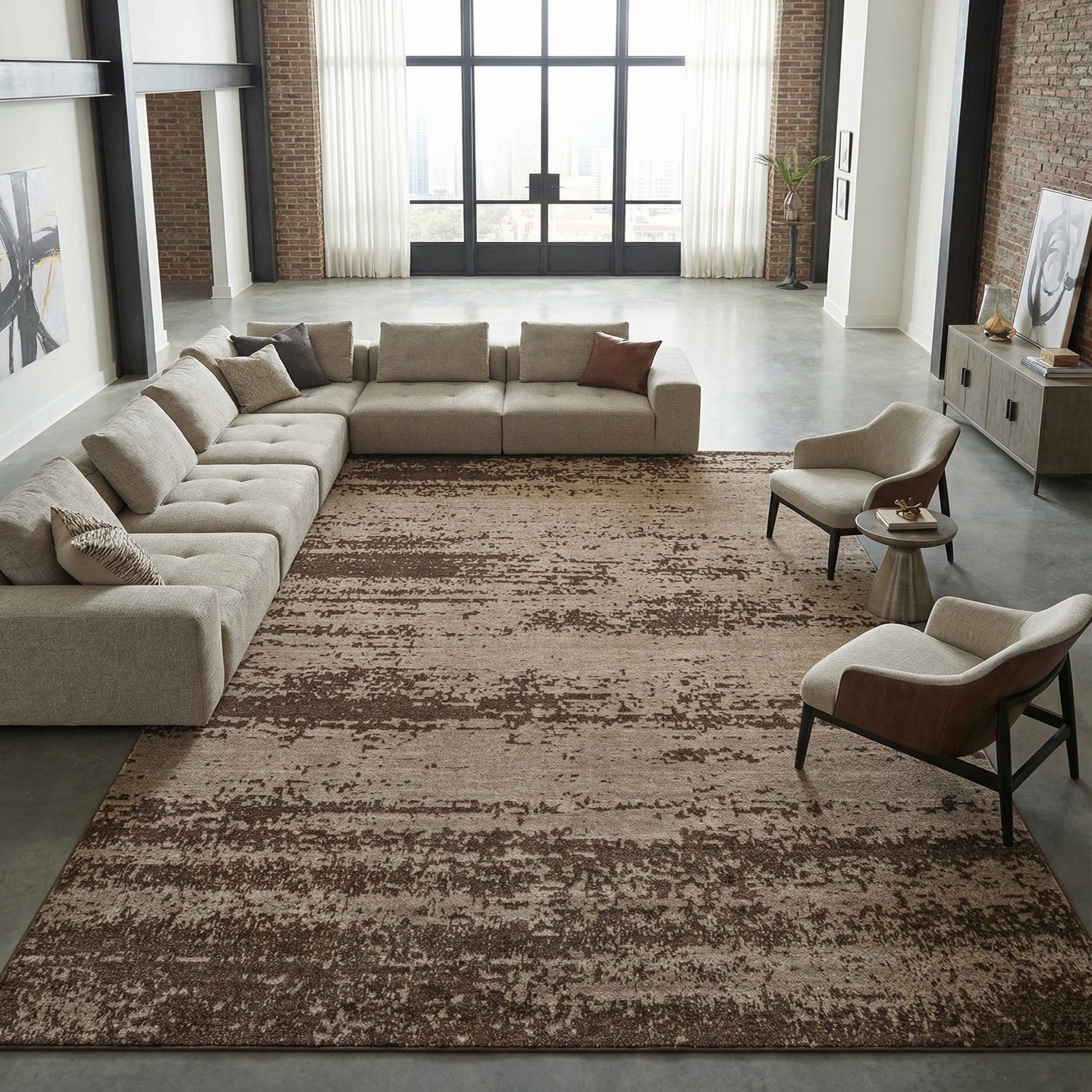 Primary color is Brown. Colors in this rug include: Brown, Beige.
