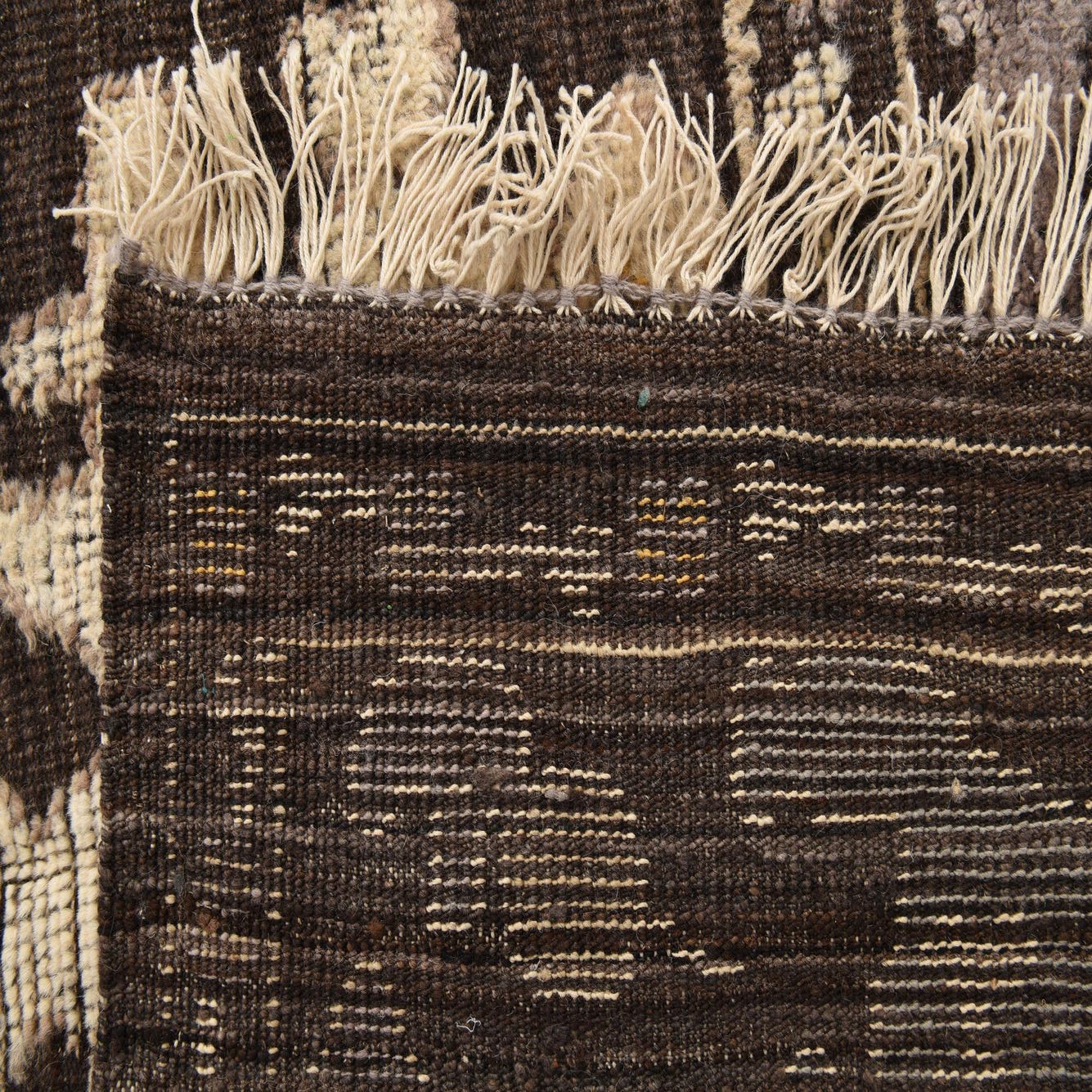 Primary color is Brown. Colors in this rug include: Brown, Beige, Gray, Ivory, Yellow.