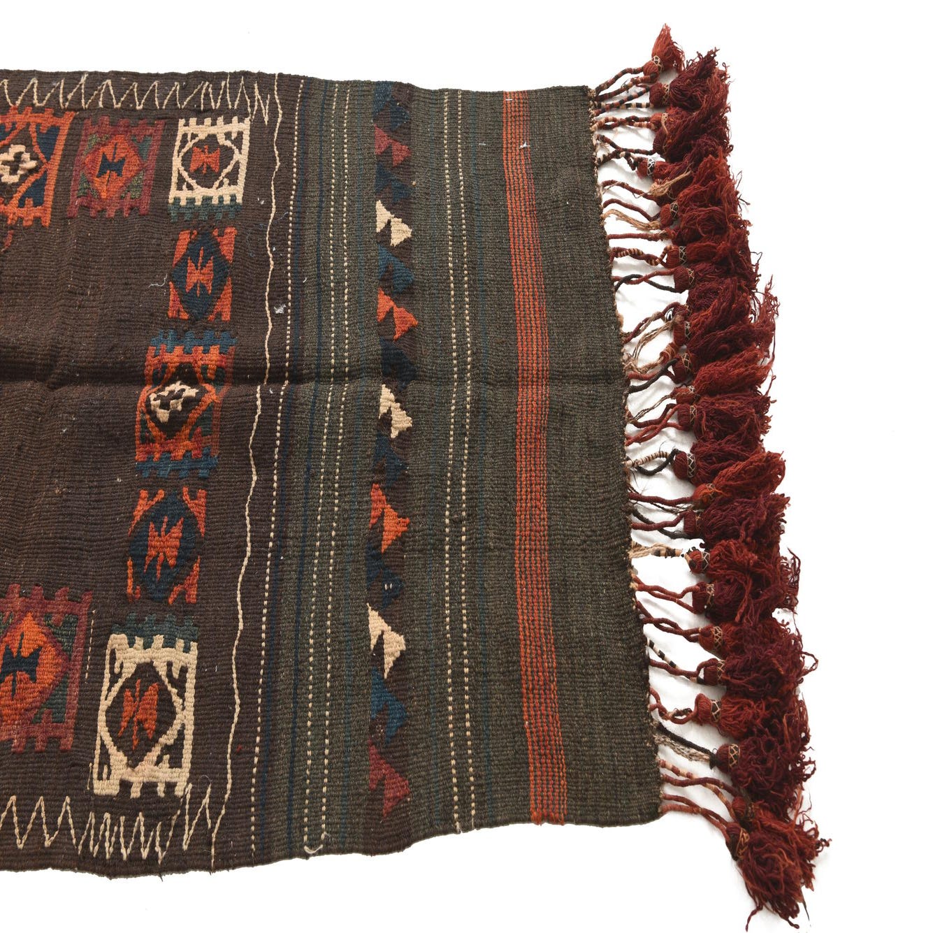 Please note, this rug has condition details of missing fringe, but retains a sense of character and authenticity. The rug includes fringed edges which add to its traditional style.