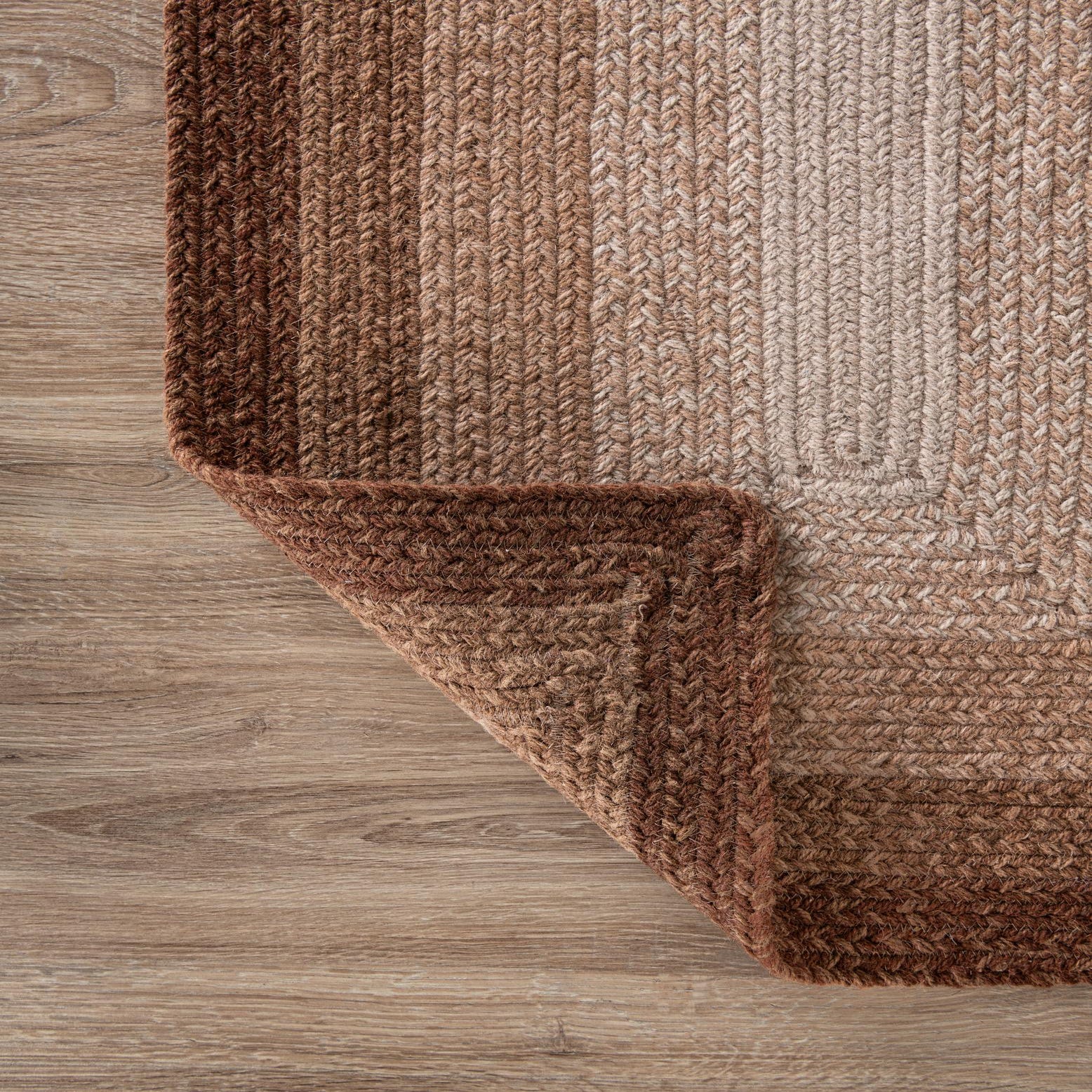 A 12 ft runner rug featuring a modern braided wool design in varying shades of brown and tan, ideal for a hallway.