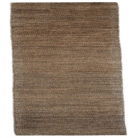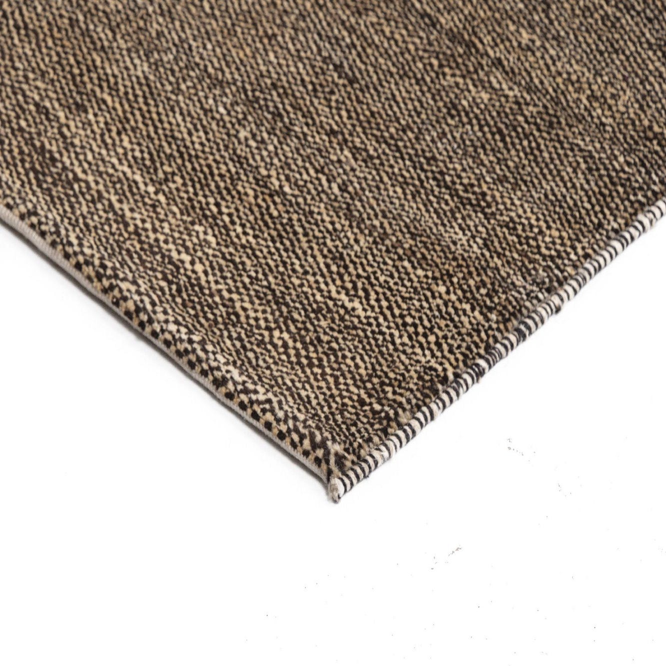 A long, rectangular 12 ft Juma runner rug in varying shades of brown and tan, showcasing its handmade wool texture.