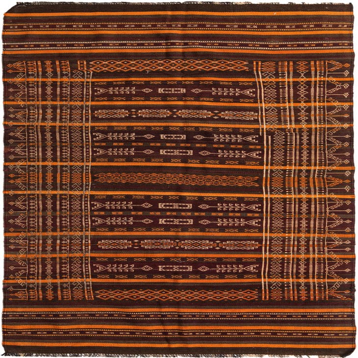 Primary color is Brown. Colors in this rug include: Brown, Beige, Light Brown, Orange.