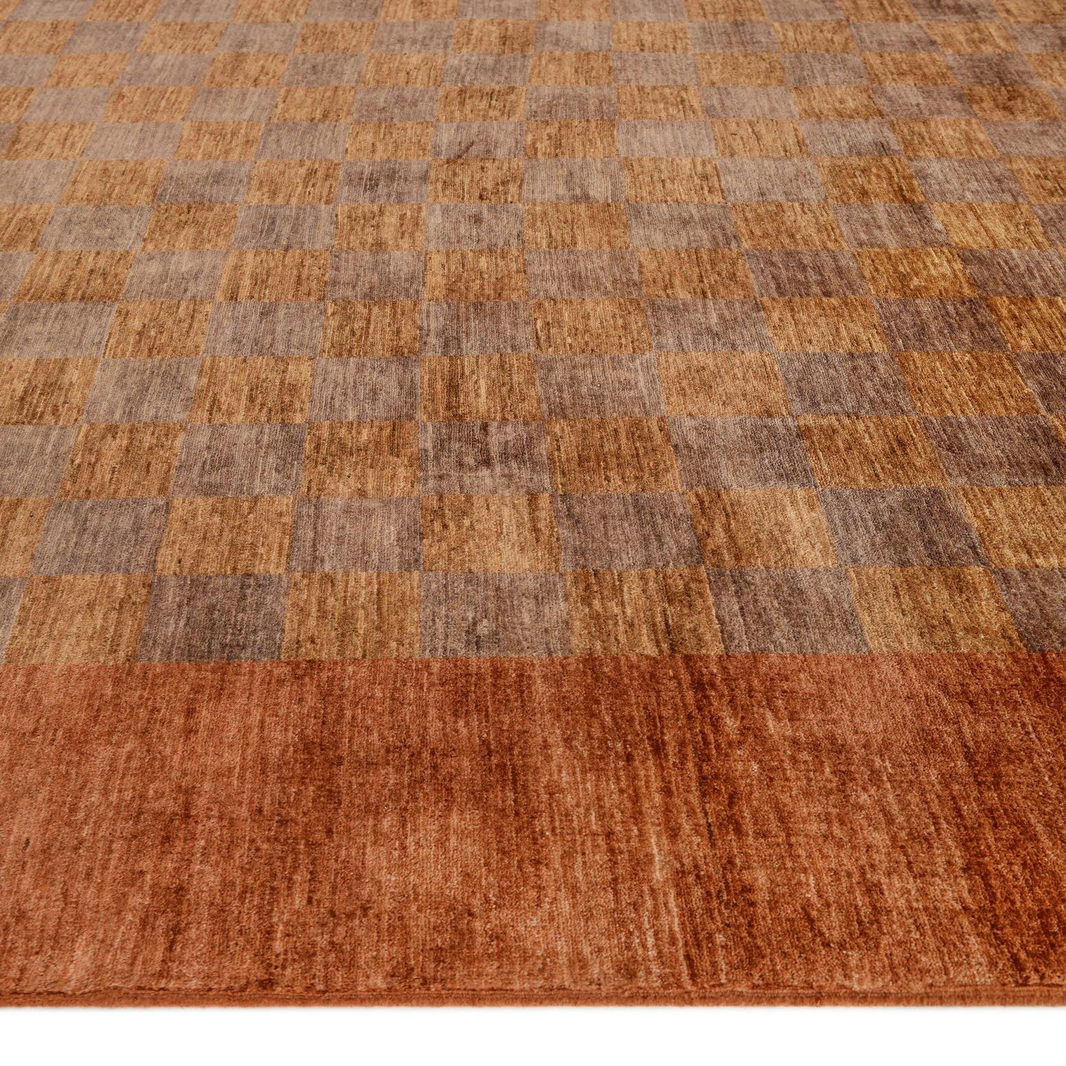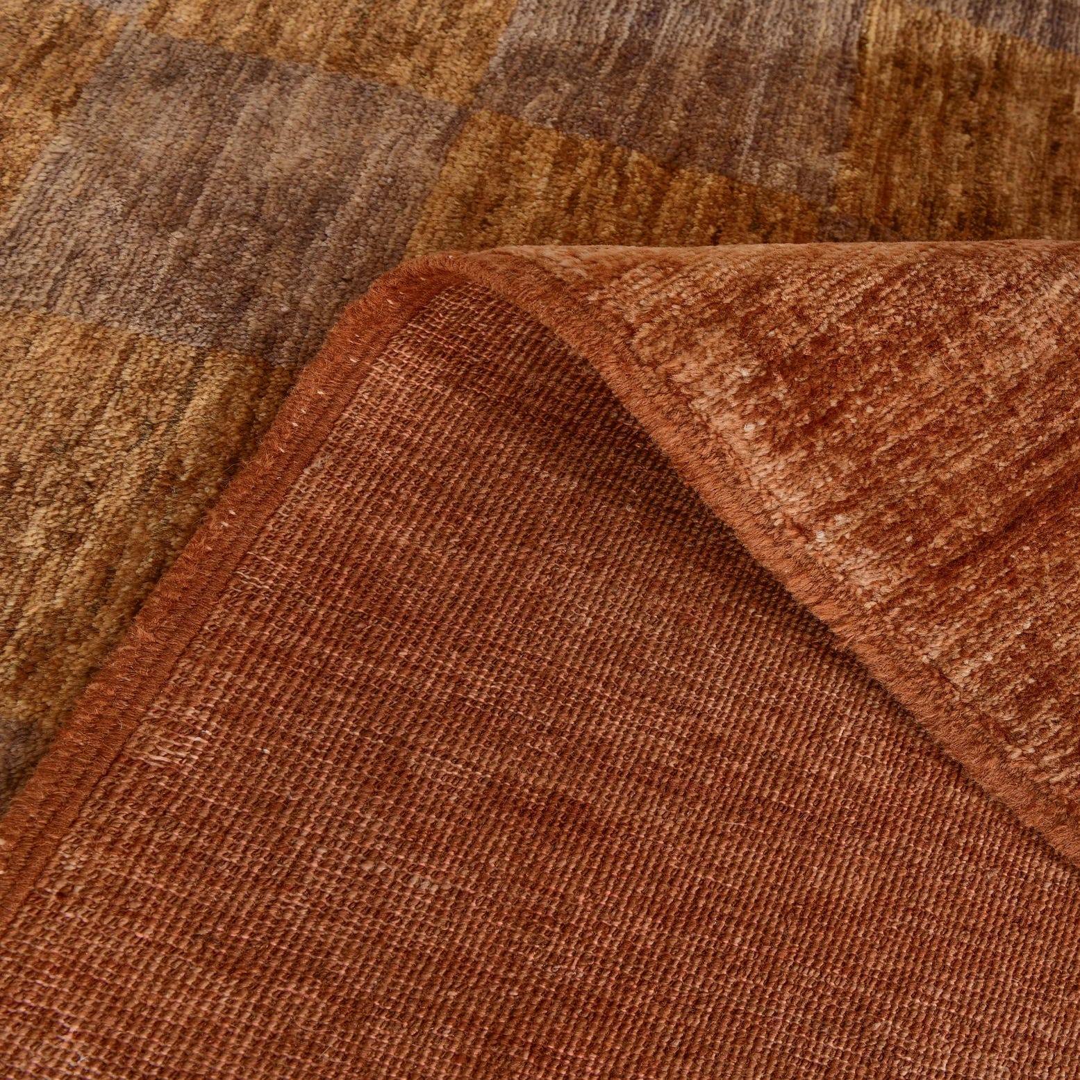Primary color is Brown. Colors in this rug include: Brown, Gold, Terracotta.