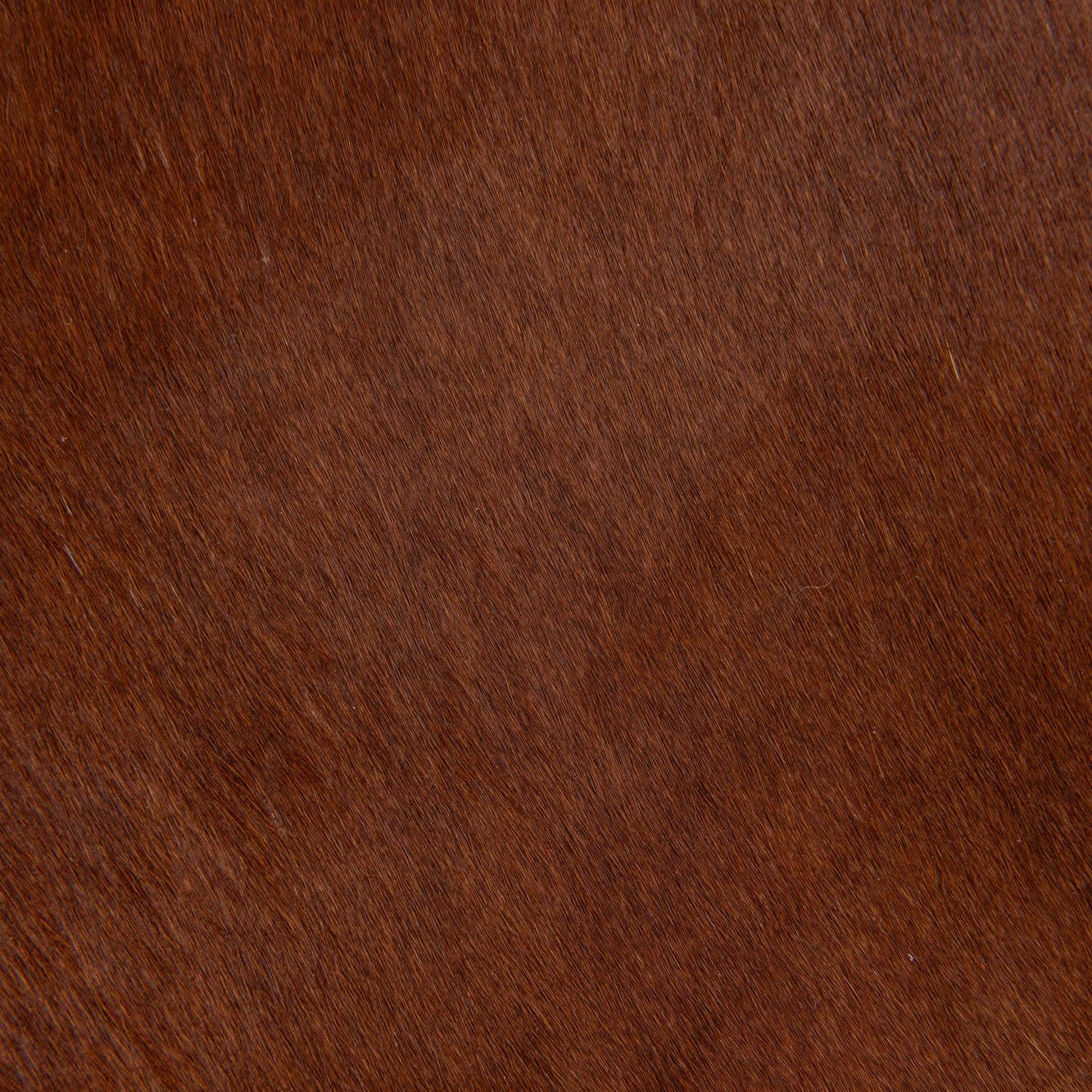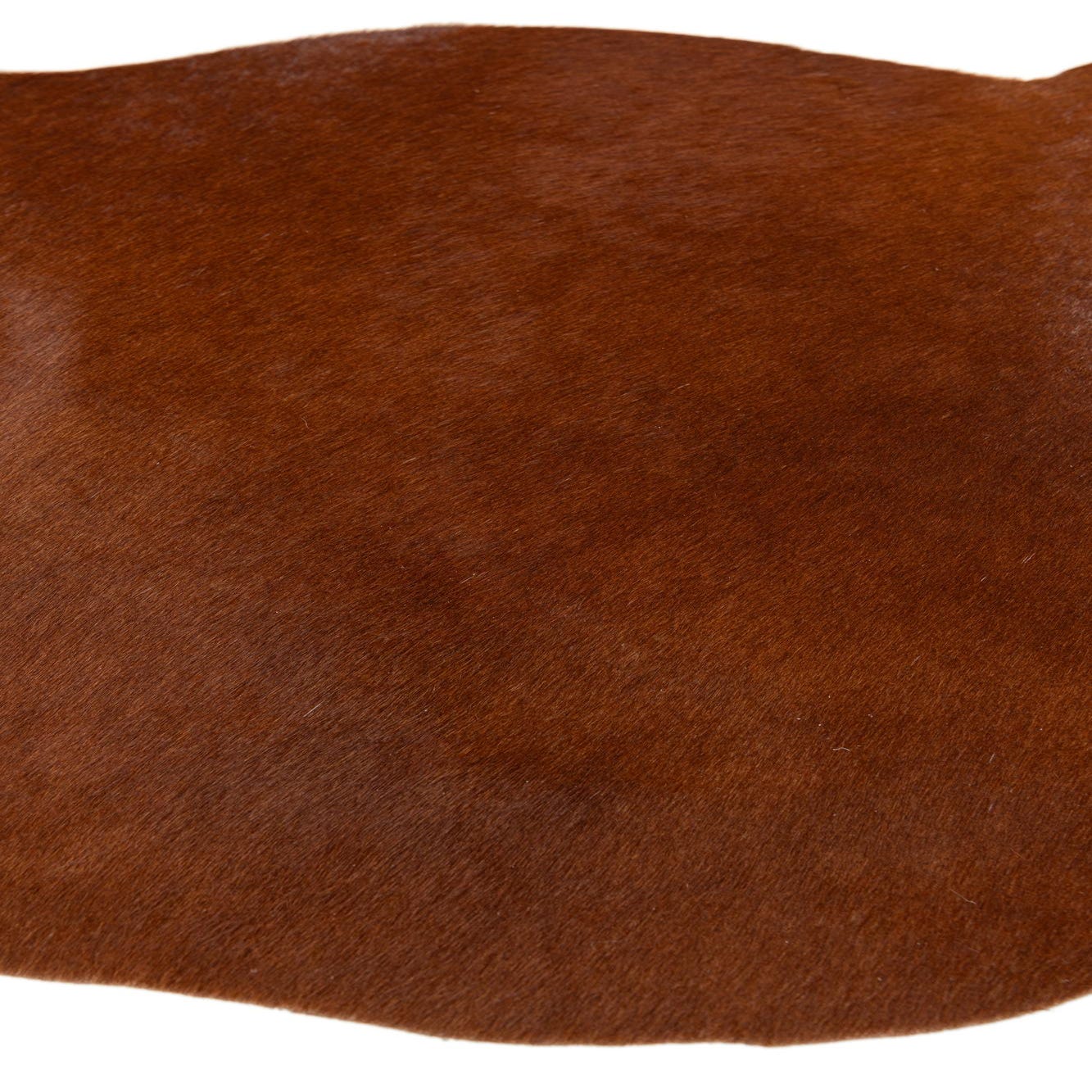 A 2x3 brown cowhide rug with a natural, irregular shape, featuring a smooth, flat texture.